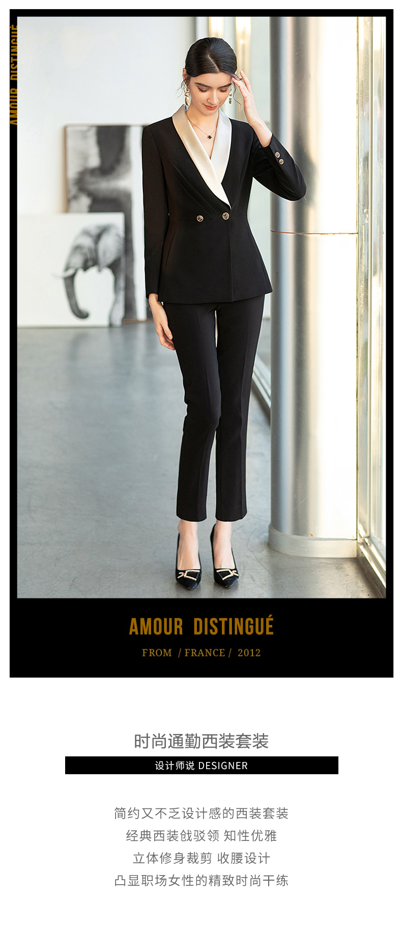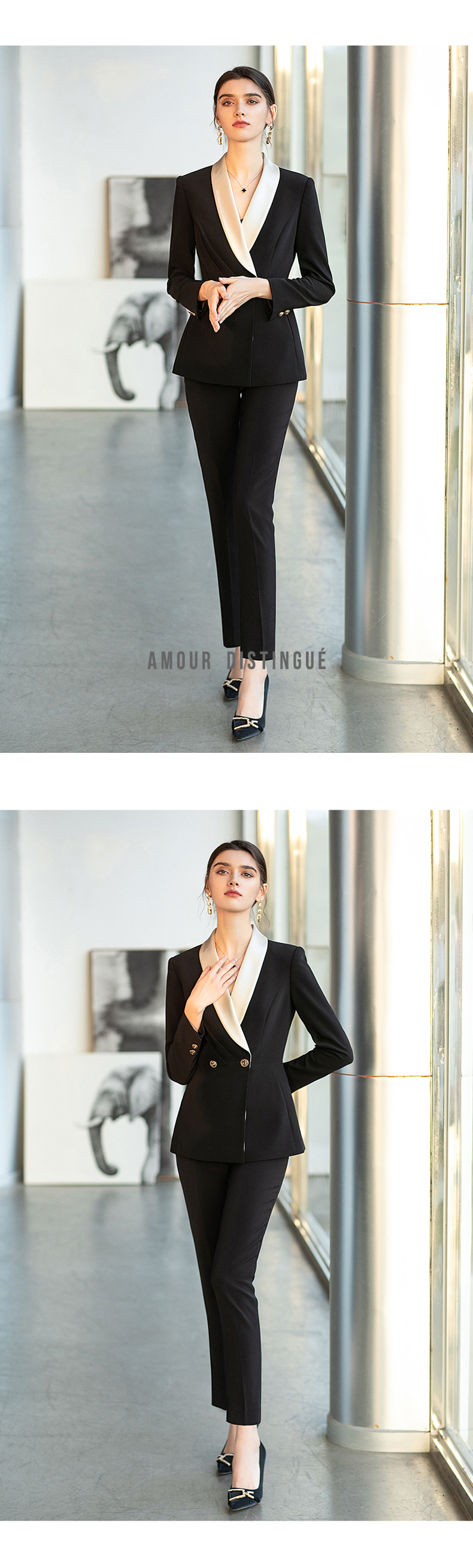 AD高级感时装气质接拼香槟色醋酸西装外套女2021新款职业西服套装 商品图4