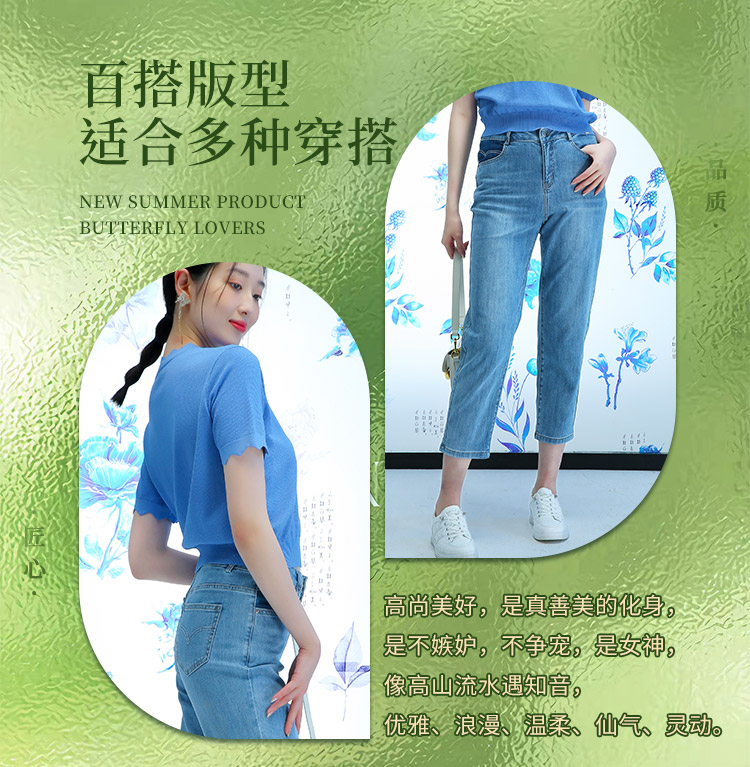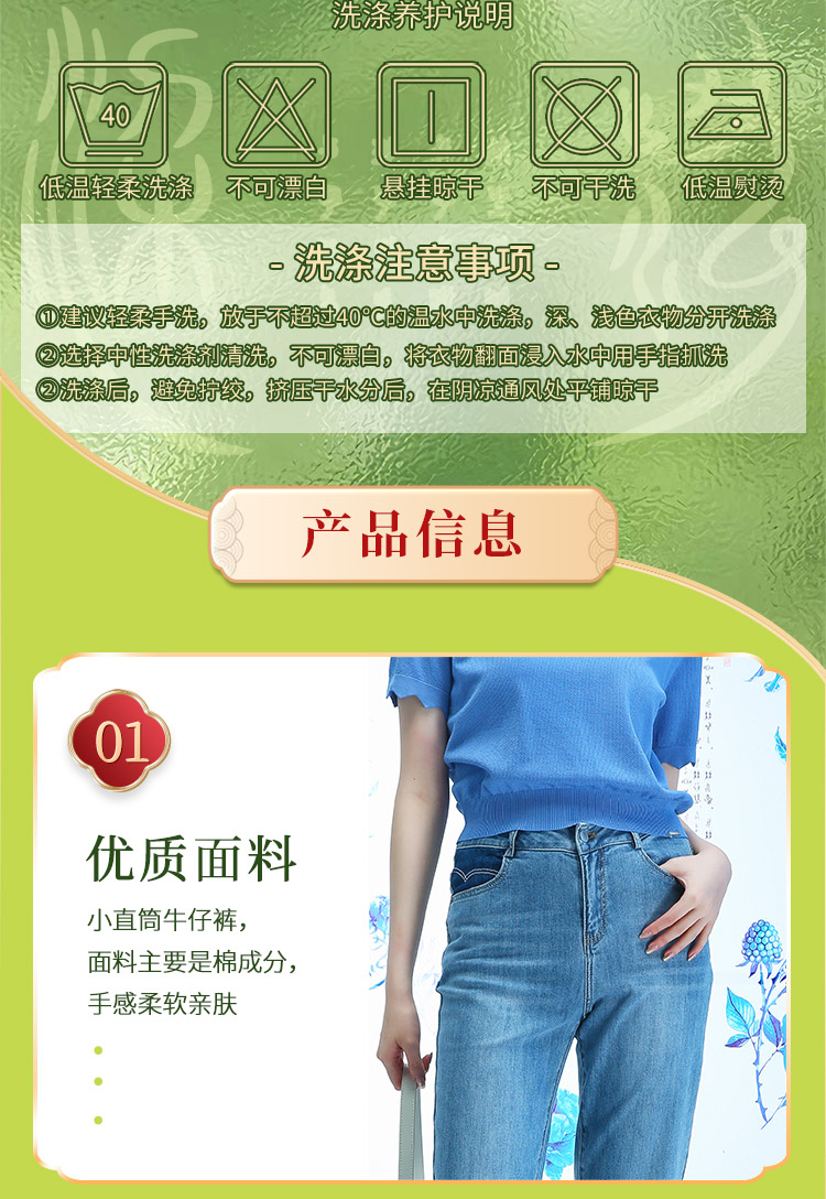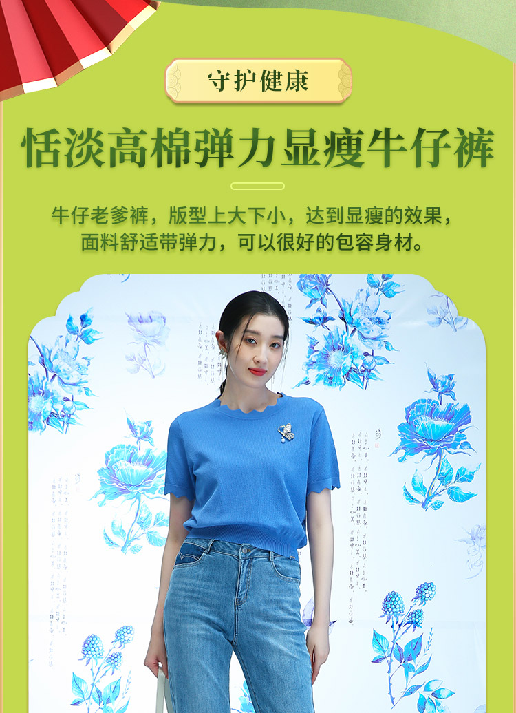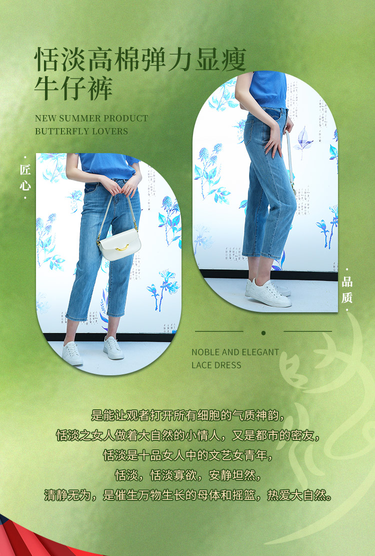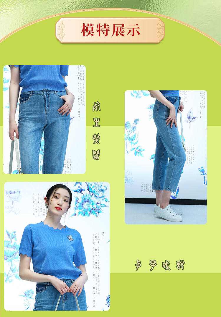 千年情话—梁祝三载同窗窃蓝桑蚕丝牛仔裤2L5007