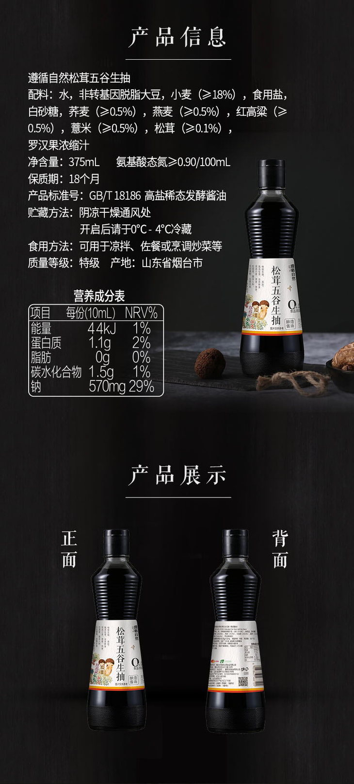 【产品名称】遵循自然松茸五谷生抽