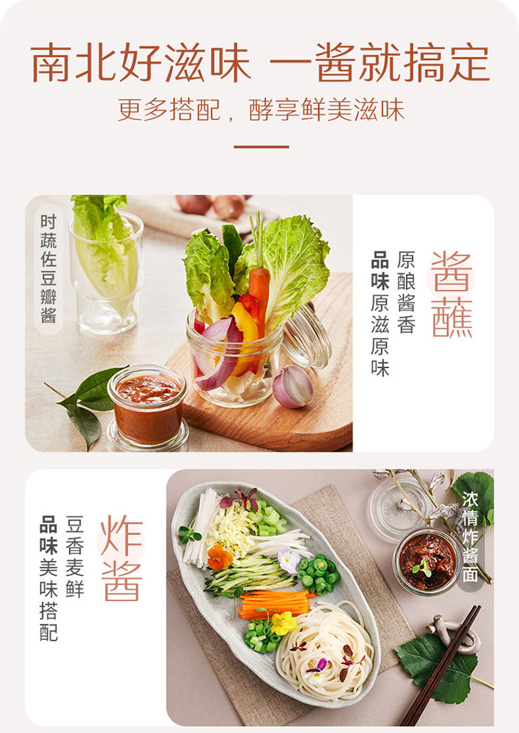 【食用方式】蘸酱,炸酱,酱炒,酱焖,酱炖,也可以做海鲜酱/牛肉酱/香菇酱等基底酱