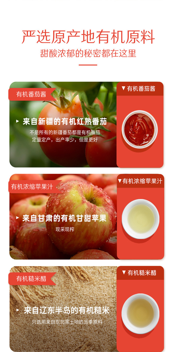 【配料】有机番茄酱、有机酿造食醋、有机白砂糖、有机浓缩苹果汁。