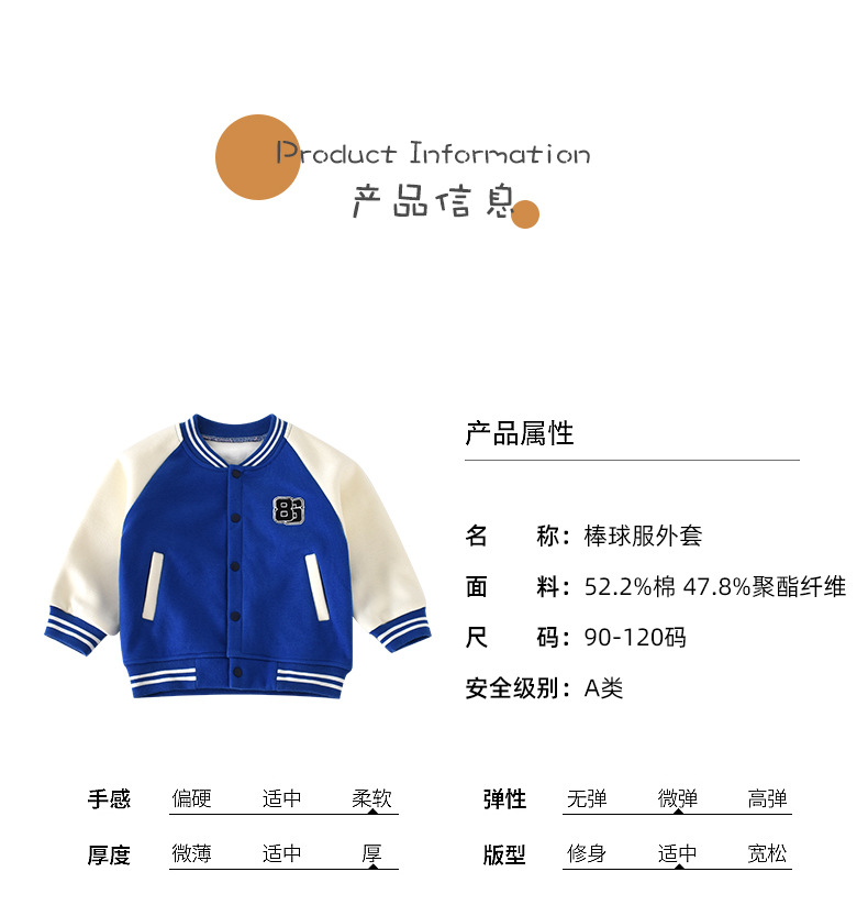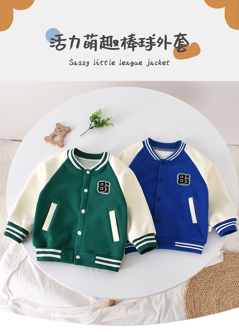 【活力萌趣棒球外套】新款春秋冬季中小童外套童装男女童单排扣长袖短款棒球服运动衣服