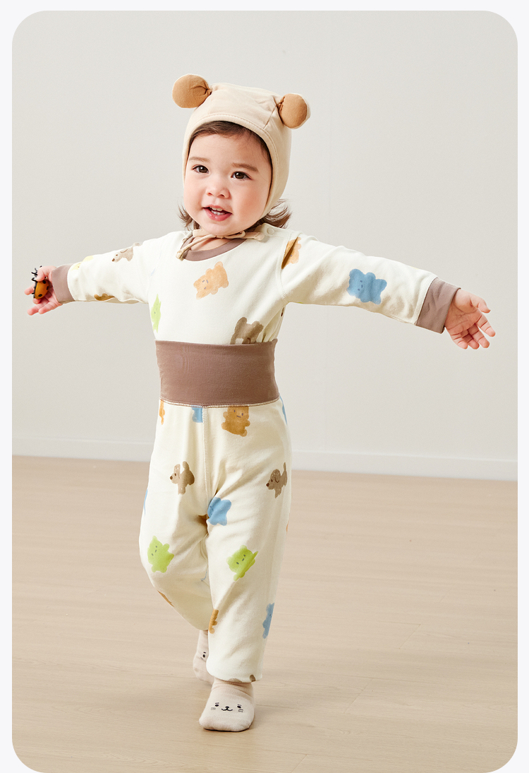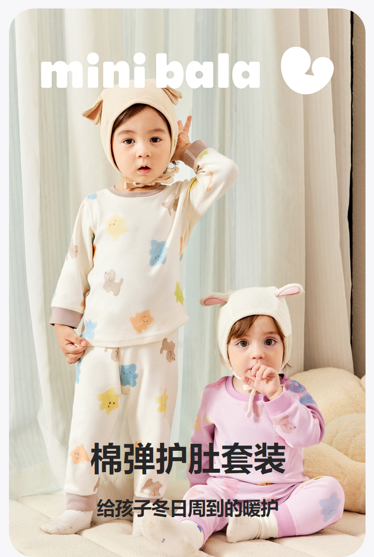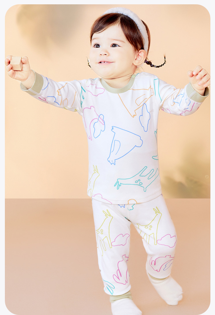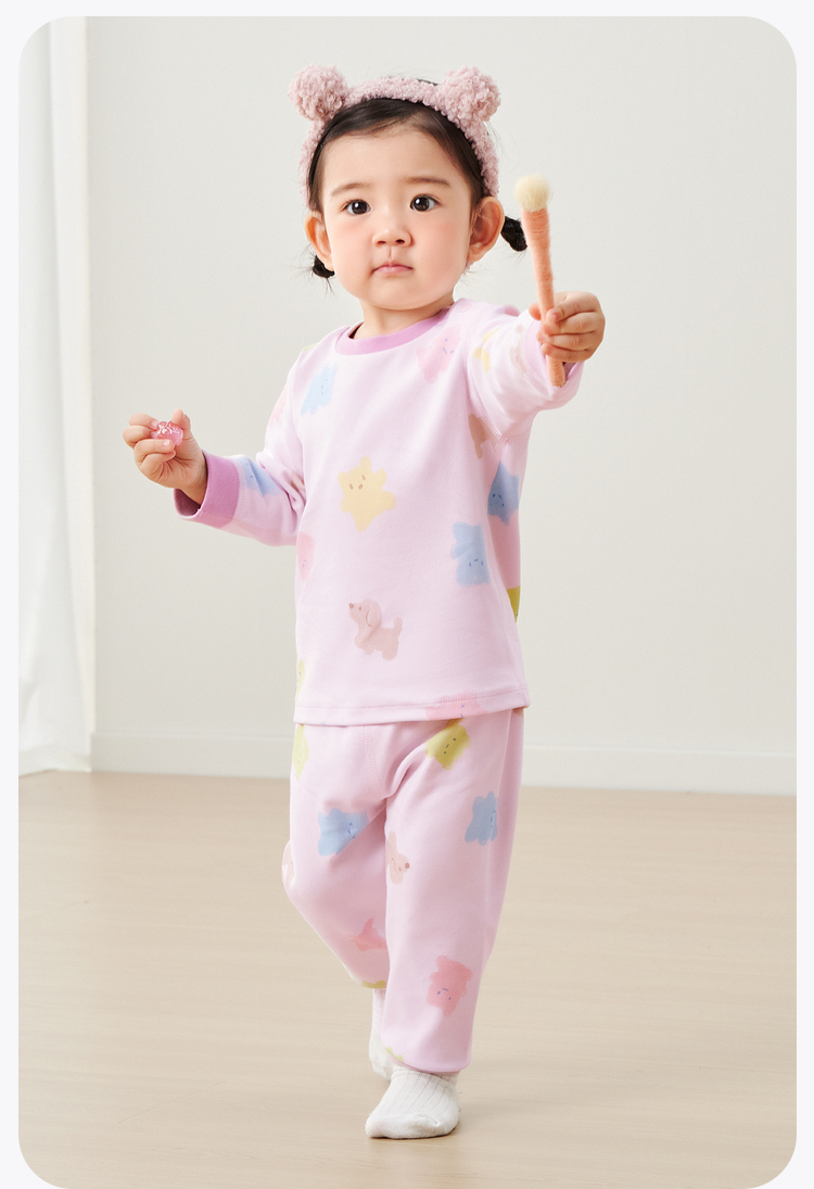 【植物芯】迷你巴拉冬季新款儿童高腰护肚睡衣套装保暖打底