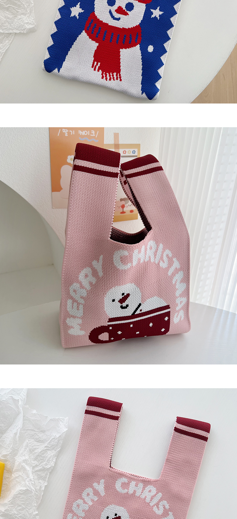 【复古百搭❗️时尚针织手提包】秋冬新款雪人手拎包包 加厚针织大容量 手提包可爱图案手机包 商品图4