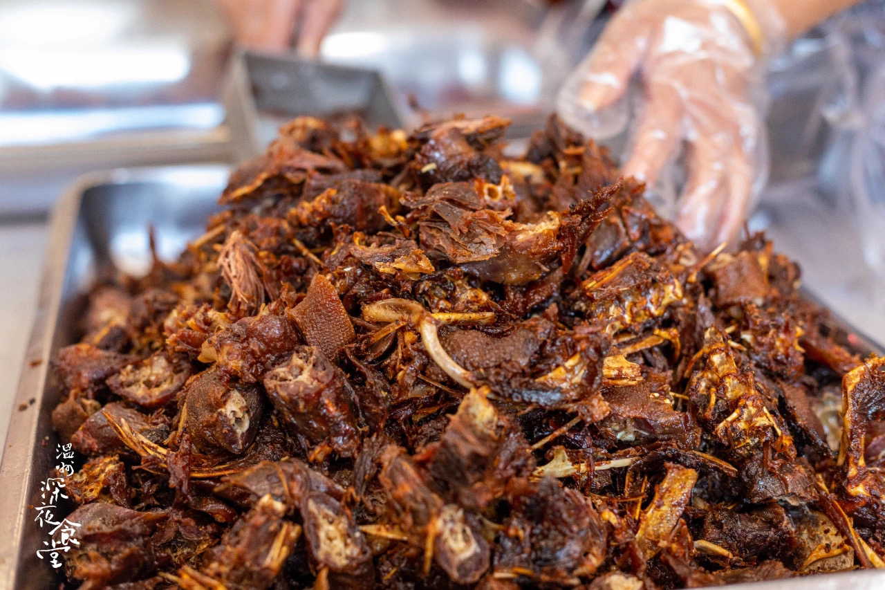 色泽浓郁,外皮柔韧有嚼劲,微微甜,鹅肉紧实入味,再蘸上秘制酱油醋,酸甜鲜咸的复合味道一层一层满足我们的味蕾!越嚼越香,让人欲罢不能,一吃就停不下嘴!