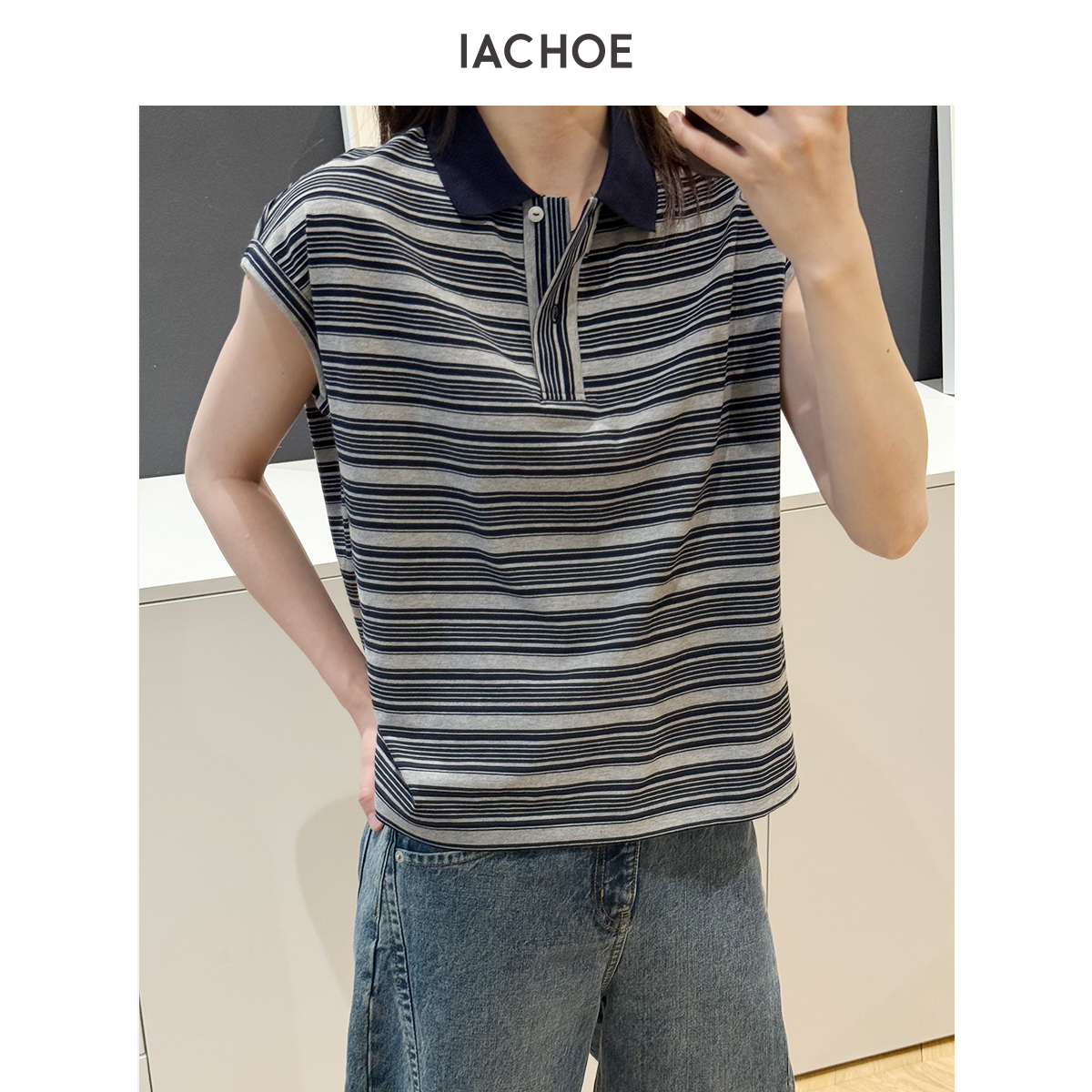 棉仓3631501021-IACHOE条纹翻领T恤