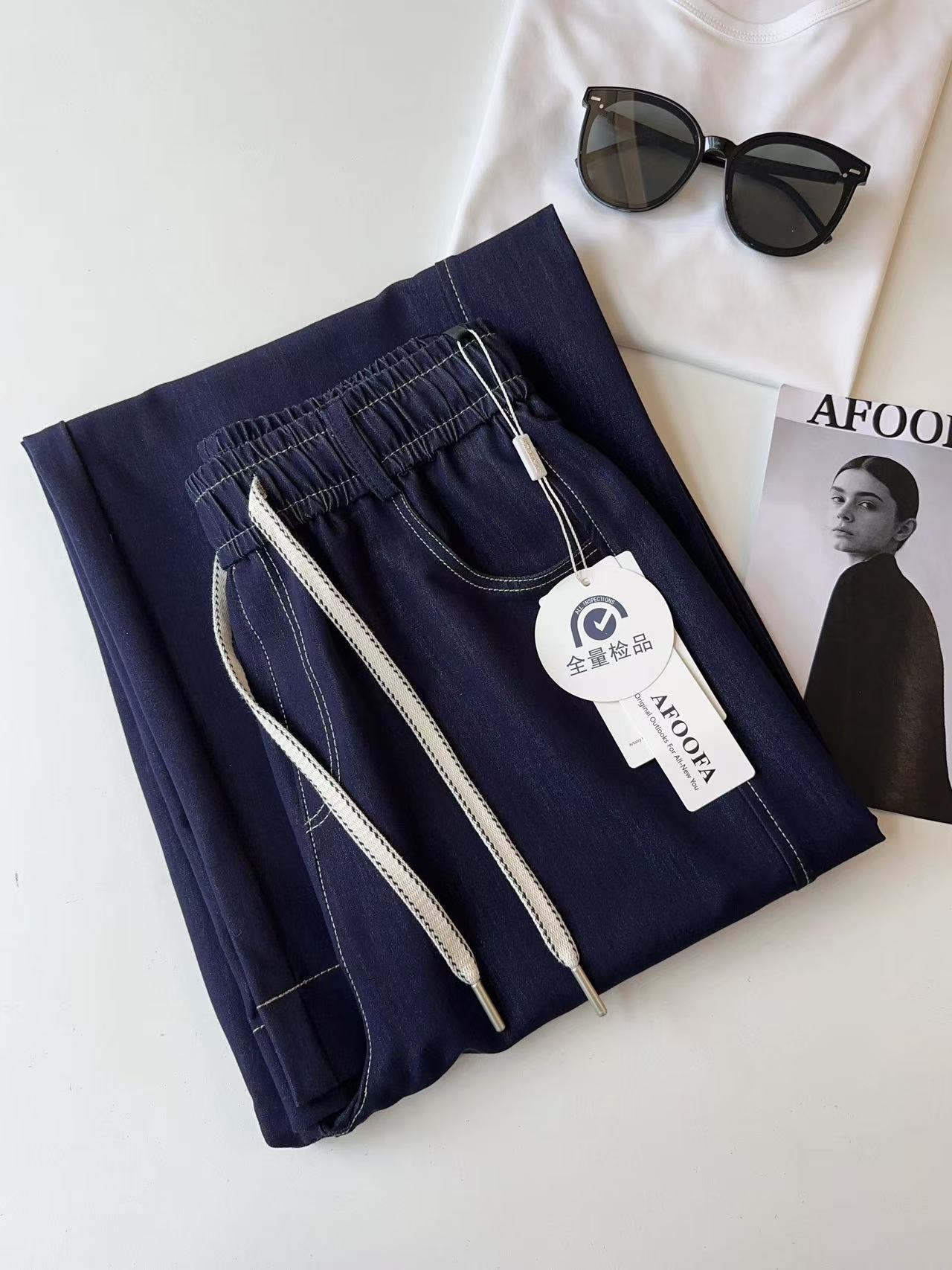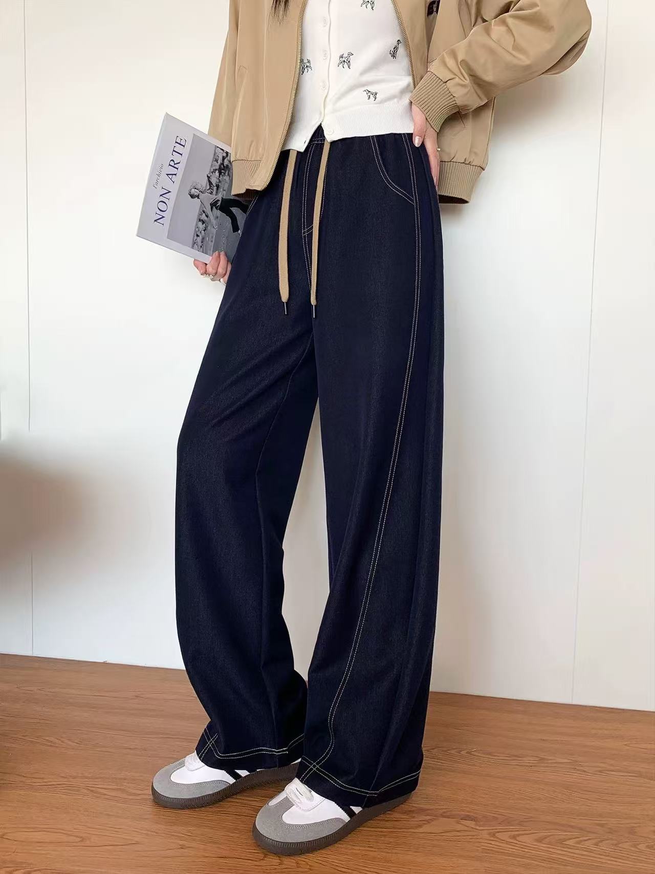 【hm1】女士百搭休闲直筒宽松牛仔长裤!!