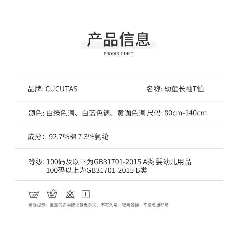 Cucutas幼童长袖T恤CY25AUW537白蓝色调/白绿色调90#-130#