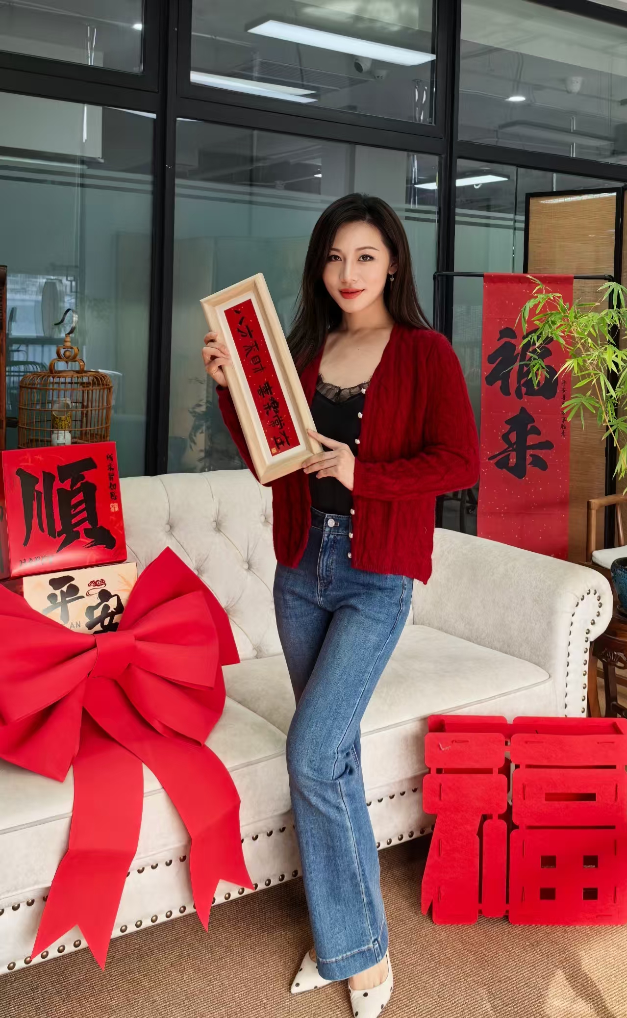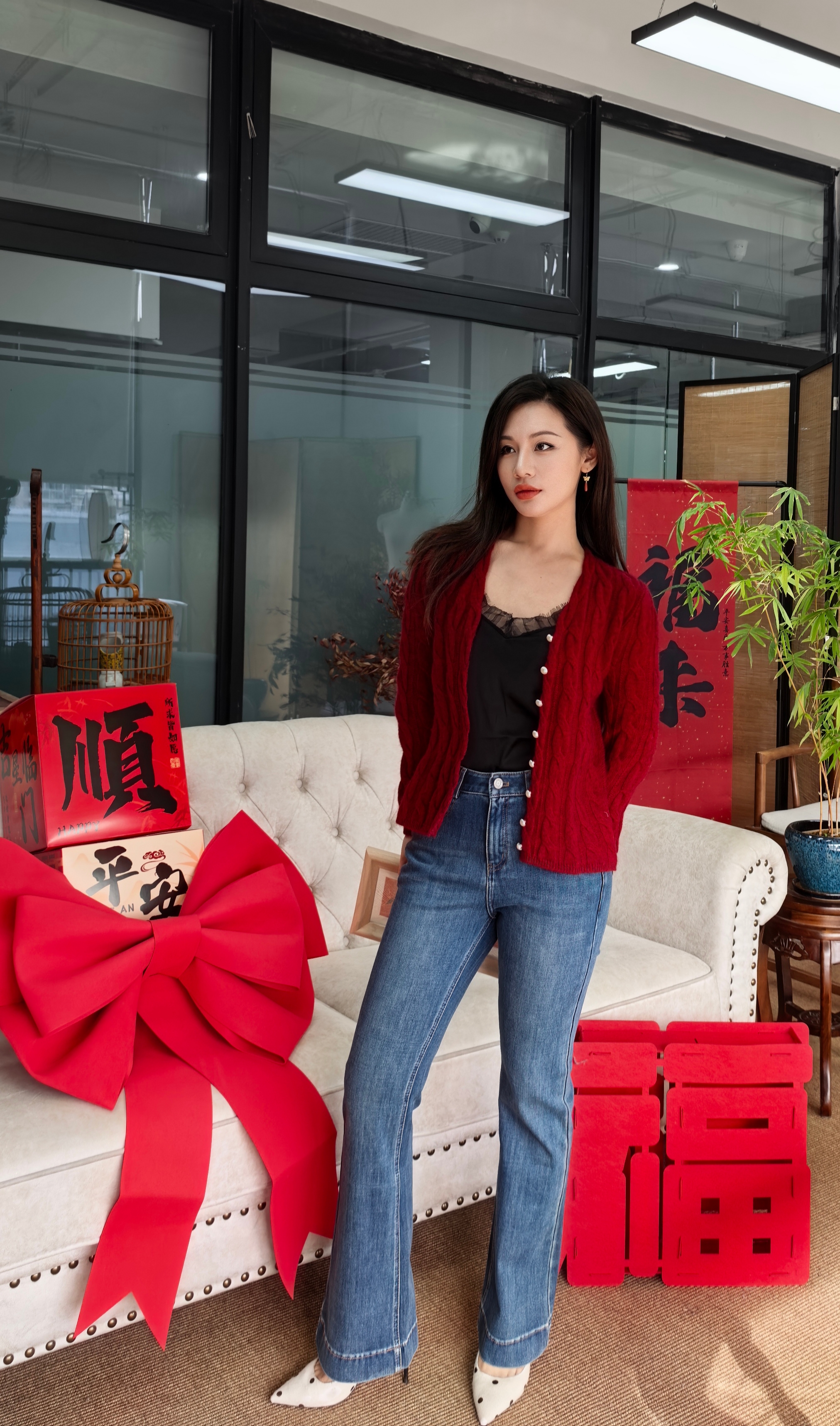 ❤️搭配热烈的红色毛衣,在新年派对上,你就是最吸睛的焦点,浑身散发着喜庆与活力;