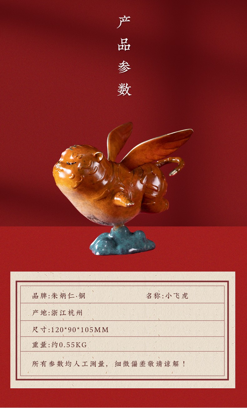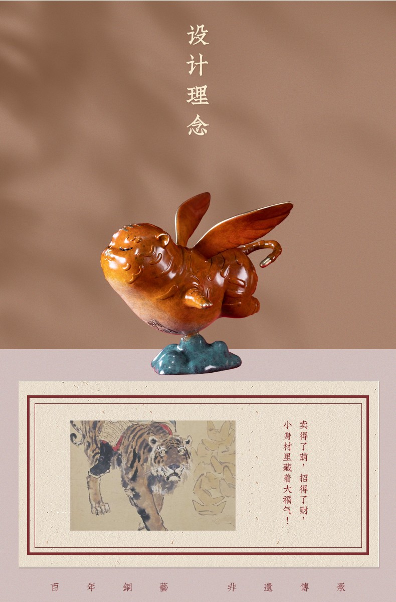 【6F】朱炳仁铜 小小飞虎创意招财虎年生肖家居小摆件萌虎摆件吉祥物装饰礼品 小飞虎