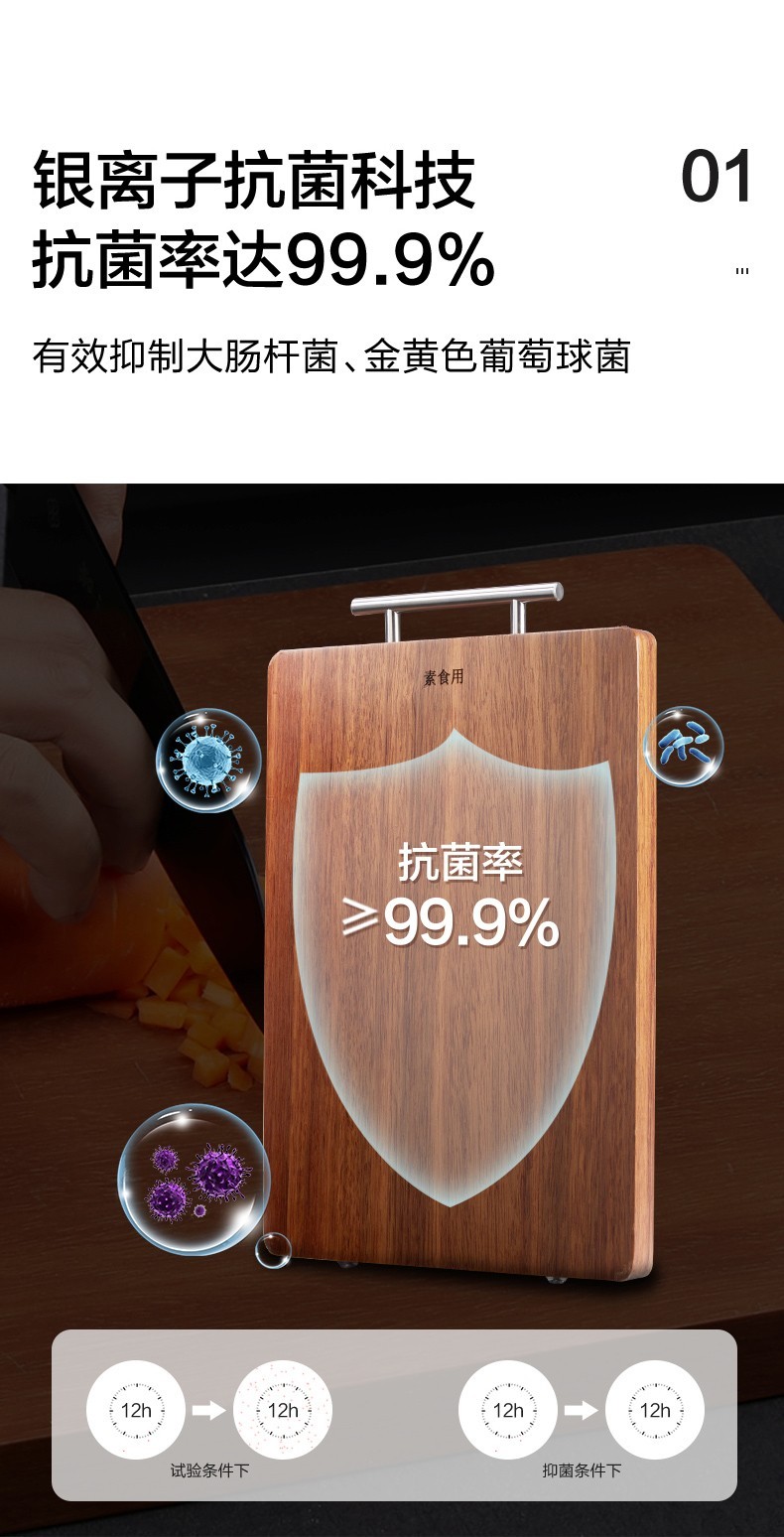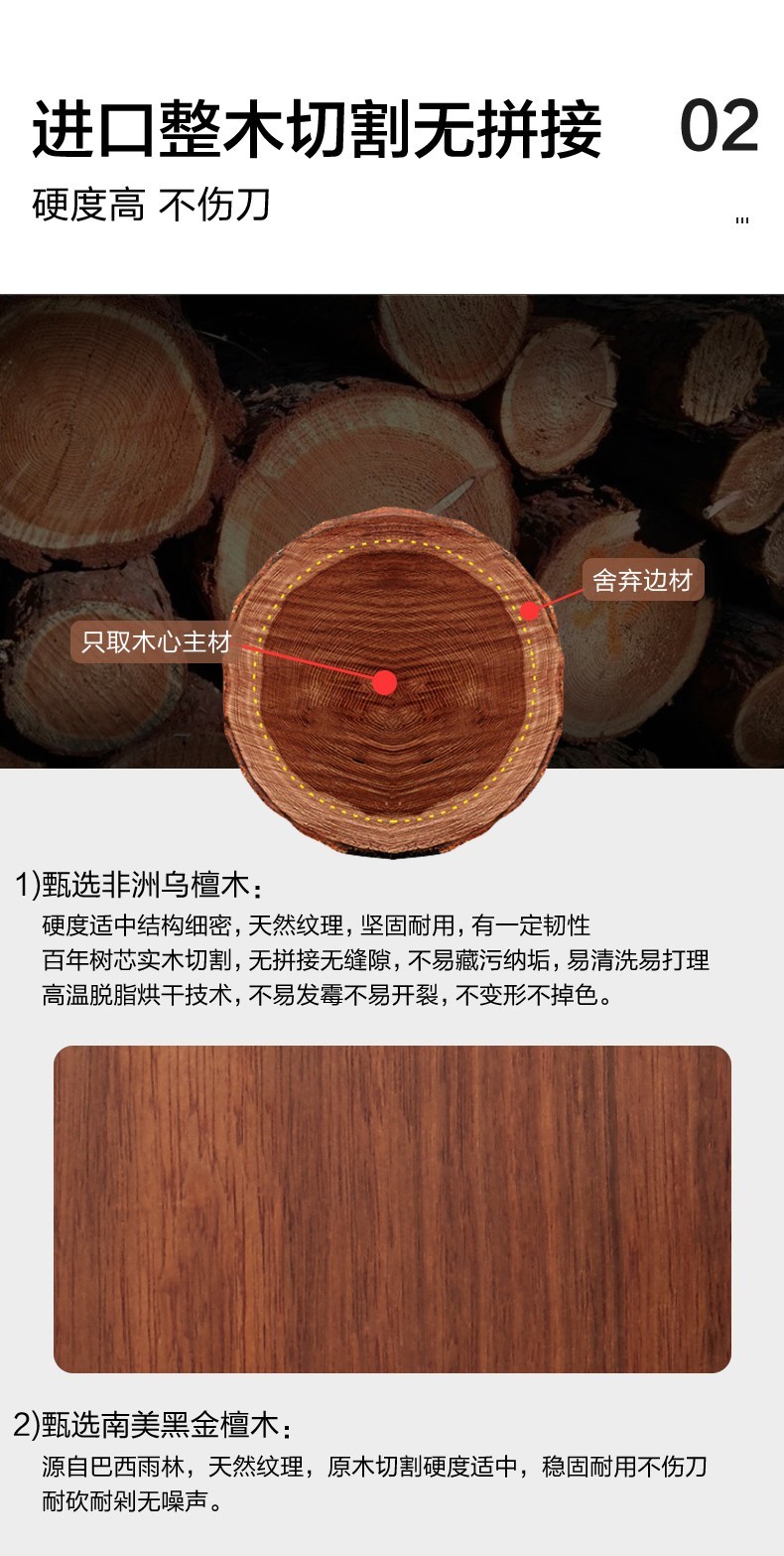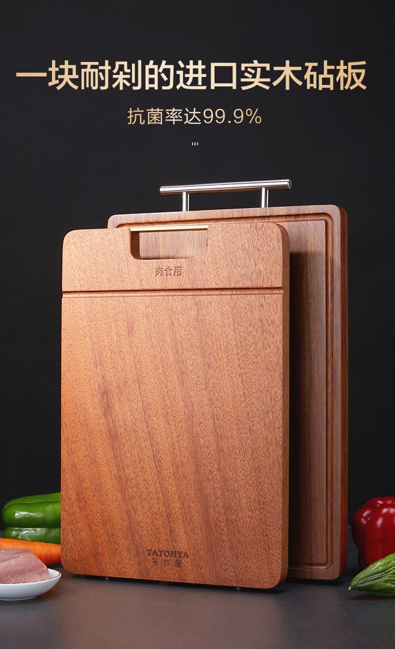 【6F】多样屋实木砧板TAYOHYA 加厚水果切菜板防霉抗菌黑金檀木整木双面砧板菜板直立木案 抗菌乌檀木双面砧板