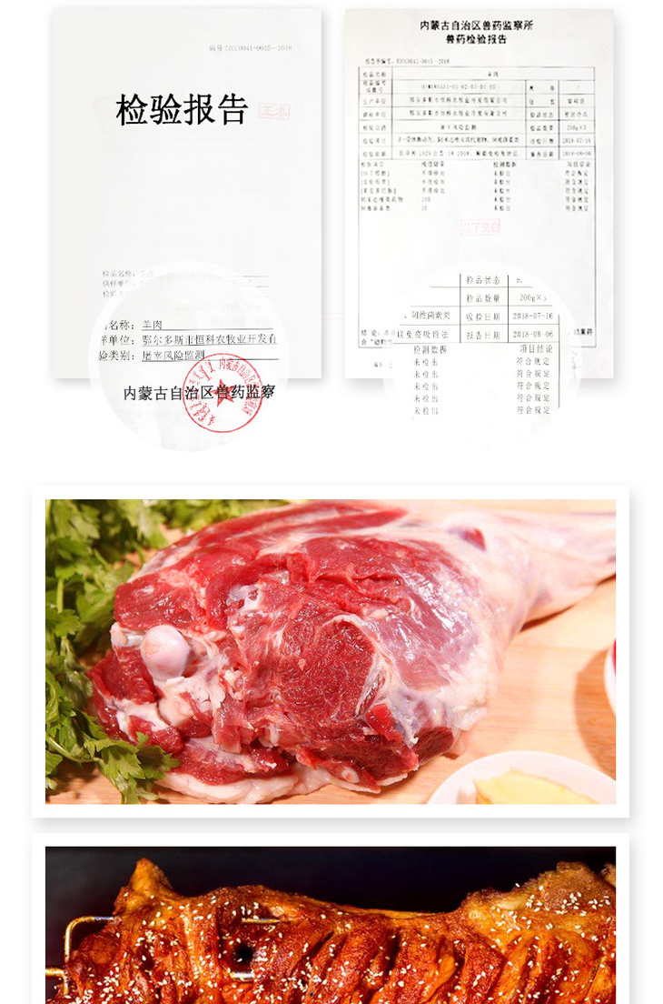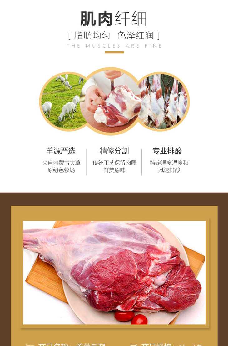 【羔羊后腿2kg】内蒙古乌审旗细毛羊羊后腿肉 带骨生羊后腿