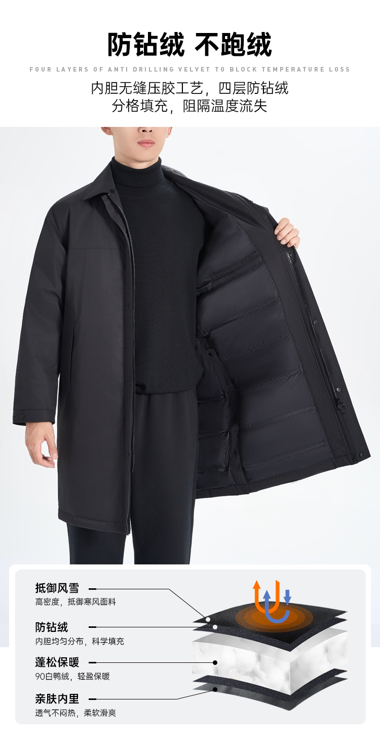 【通勤中长款羽绒服】可拆卸连帽羽绒服外套 防风防污保暖白鸭绒棉服 YZ403
