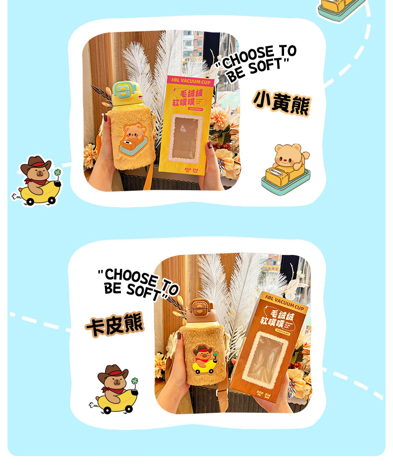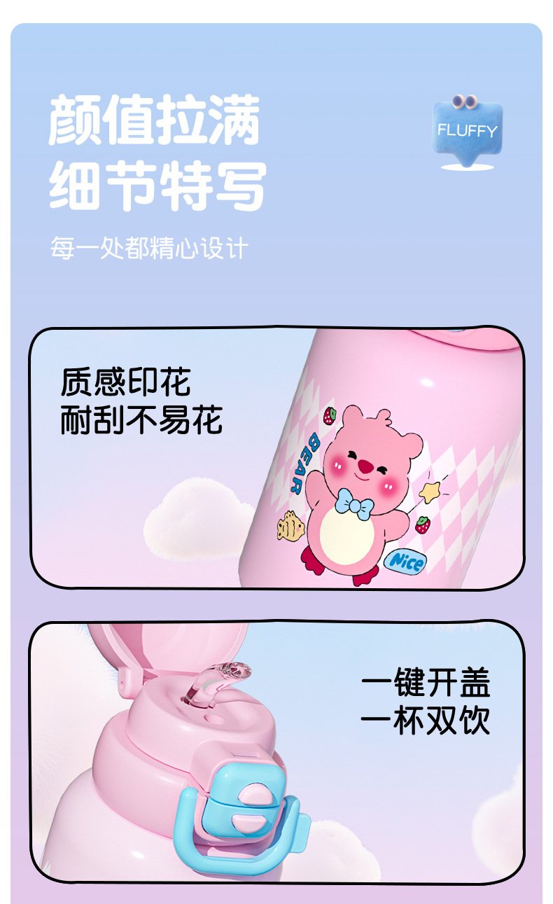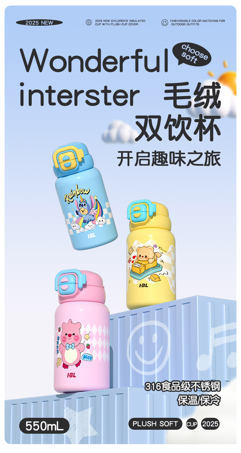 【安心“哈”水❗儿童毛绒公仔保温杯】一盖双饮喝水不换杯,硬核内“芯”健康,316不锈钢长效保温,轻巧杯出门久背不累,不锈钢水杯学生上学喝水双饮杯被子开学季QQ