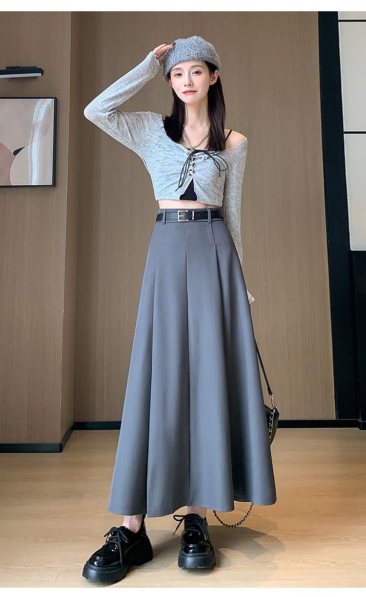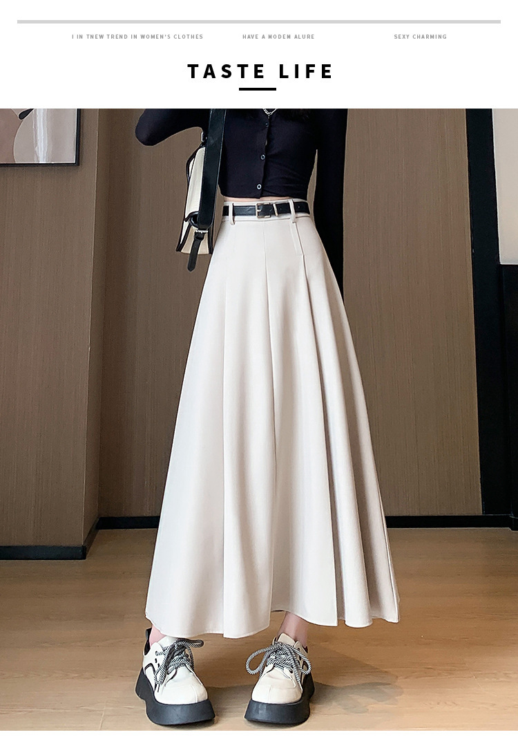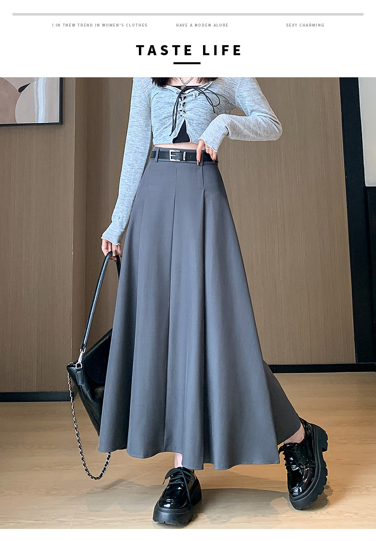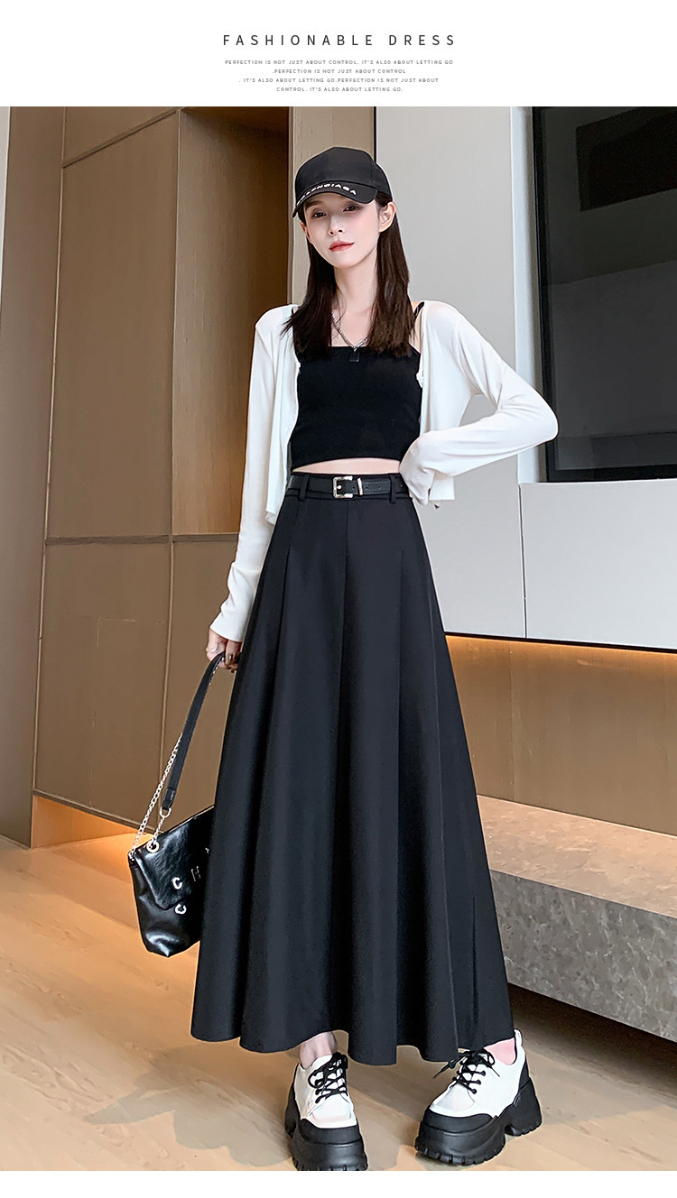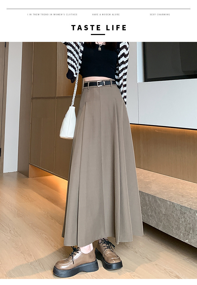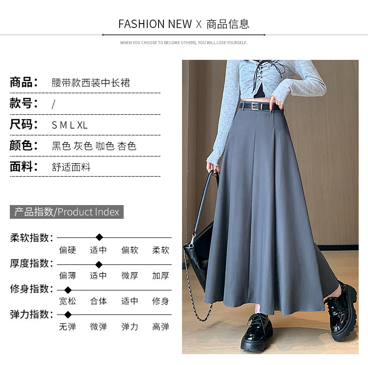 【秋季新款❗️高腰百褶半身裙】柔雅简约,干练利落,遮肉显瘦!女皮带款西装优雅气质a字中长裙裤子