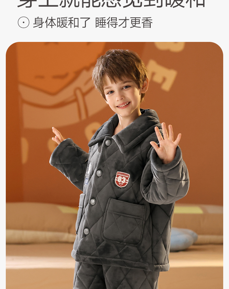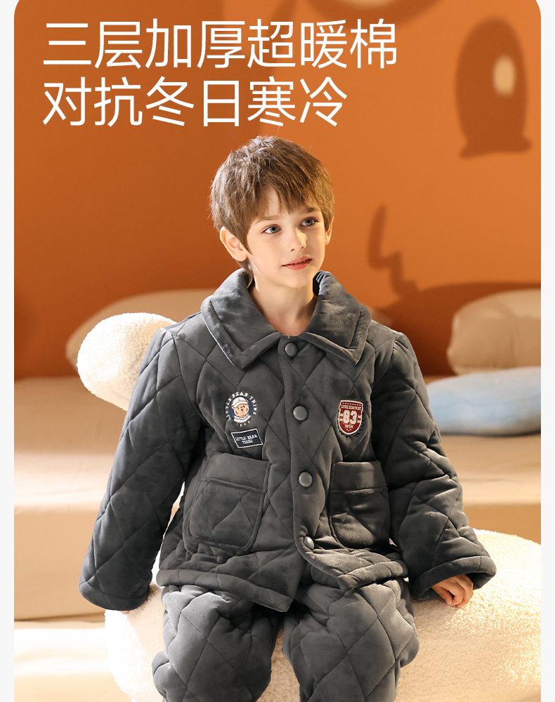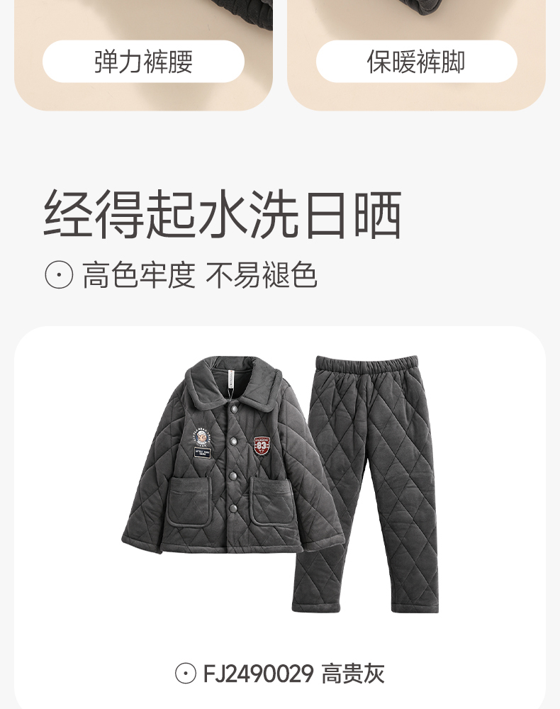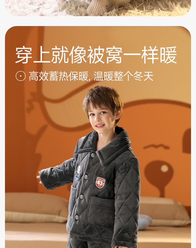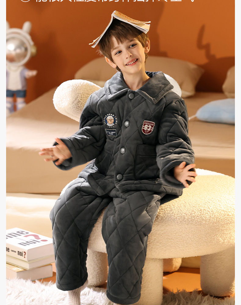 <有书独家>芬腾男童睡衣冬加厚珊瑚绒夹棉抗静电加厚法兰绒儿童家居服套装