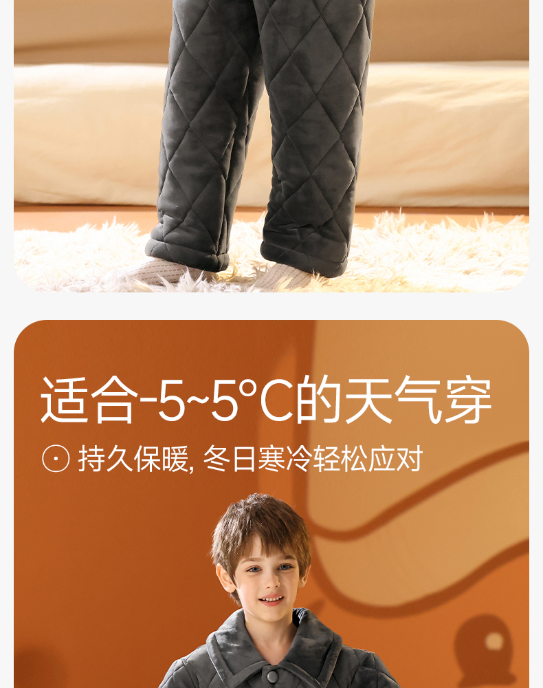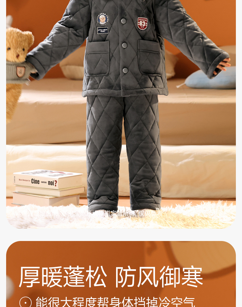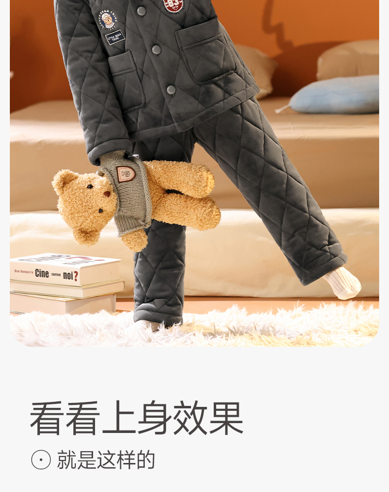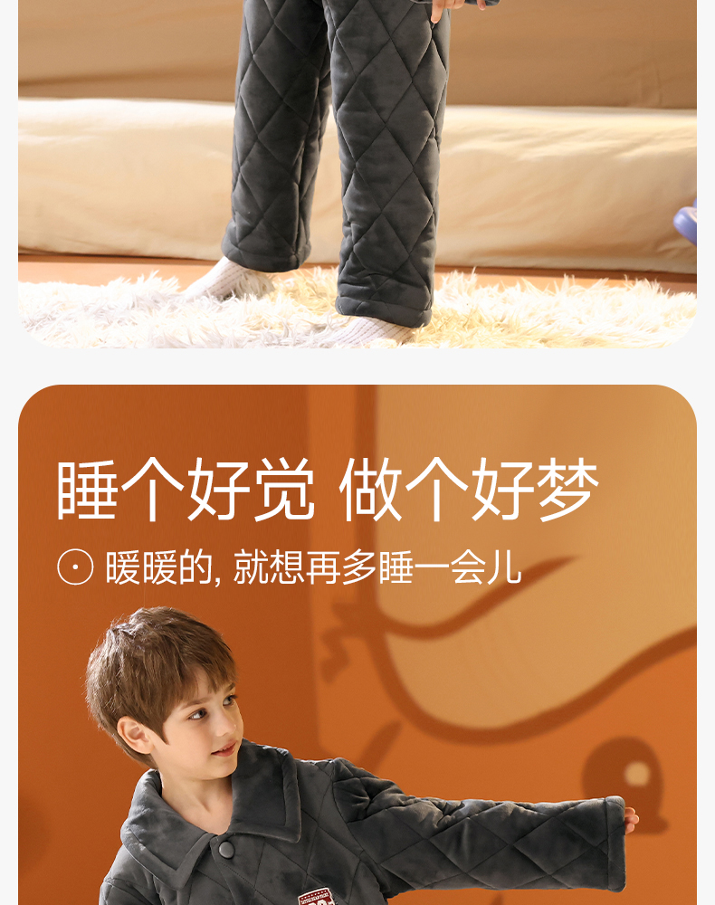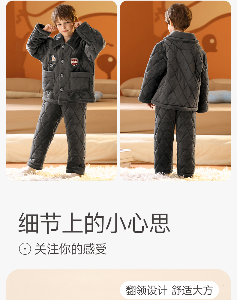 <有书独家>芬腾男童睡衣冬加厚珊瑚绒夹棉抗静电加厚法兰绒儿童家居服套装