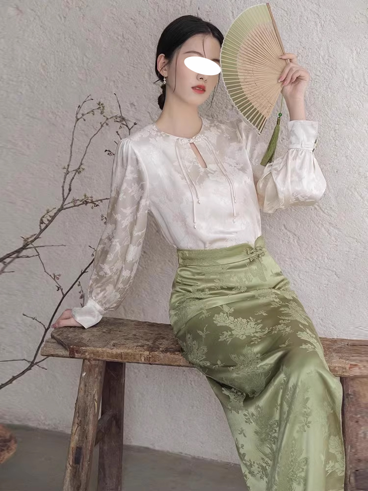 裁缝学苑AS247新款缎面长袖新中式衬衫纸样半身裙女装衬衣小衫打版裁剪样板
