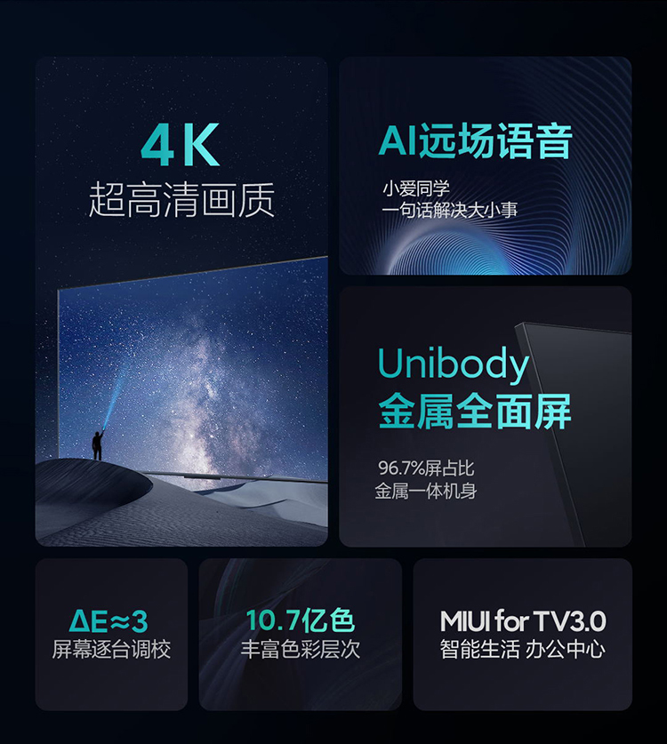 【小米】小米电视EA55 2022款 55英寸 金属全面屏 远场语音 逐台校准4K超高清智能教育电视机L55M7-EA