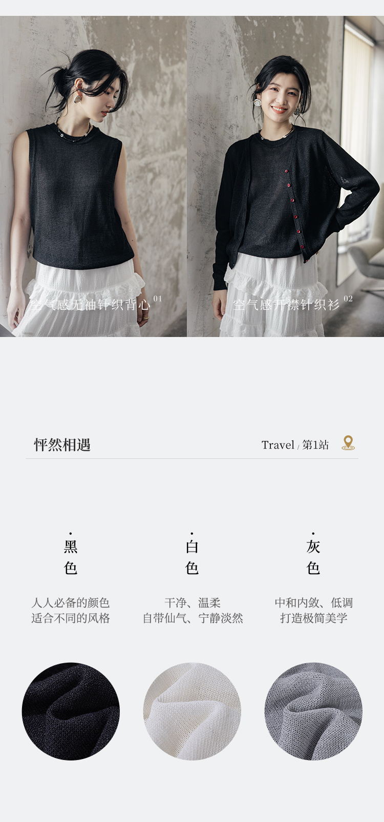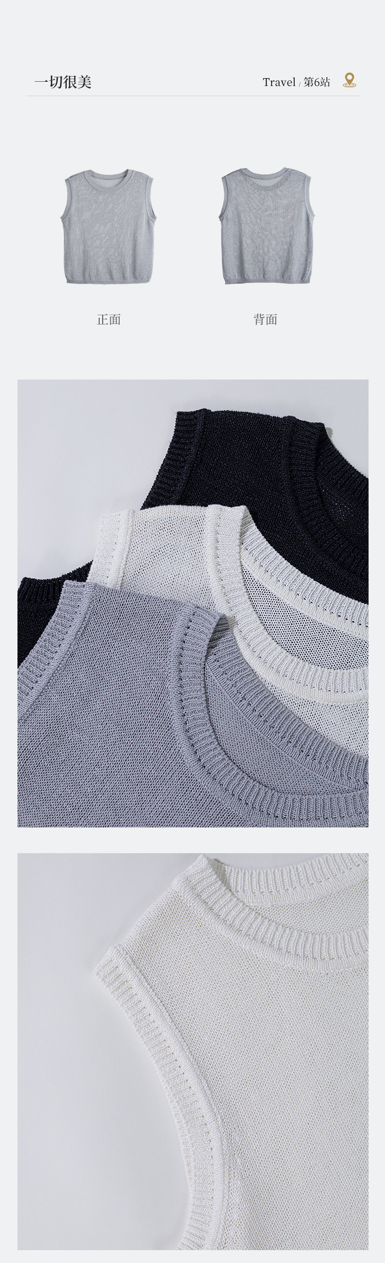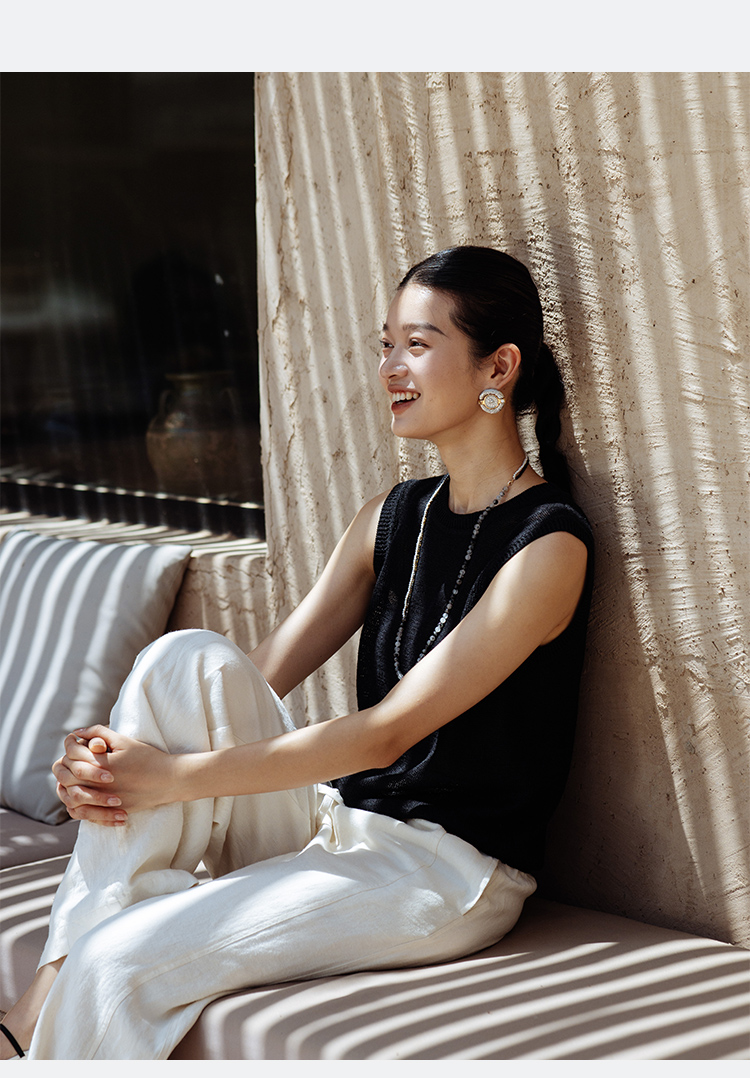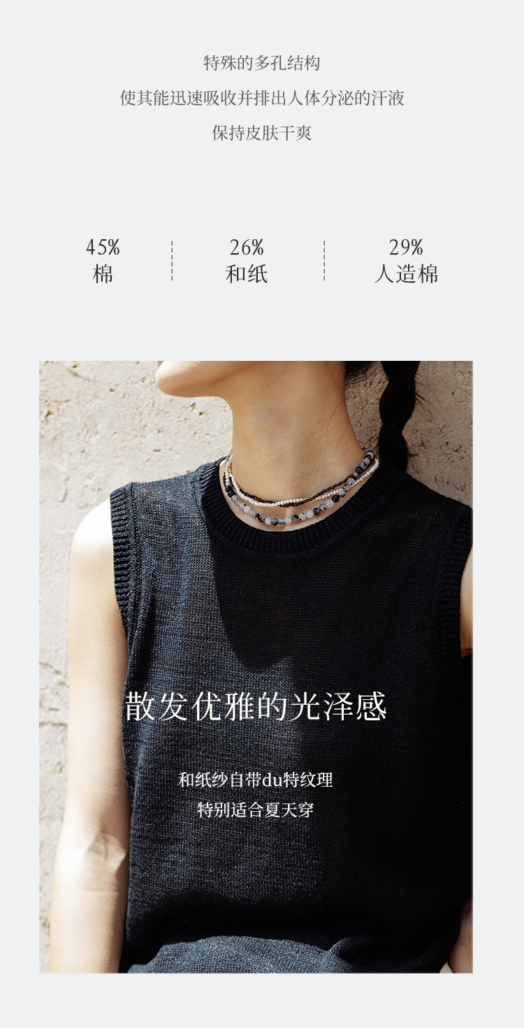 绽放旅行女装506朵【黑白灰系列】舒爽宽松圆领短款无袖针织背心
