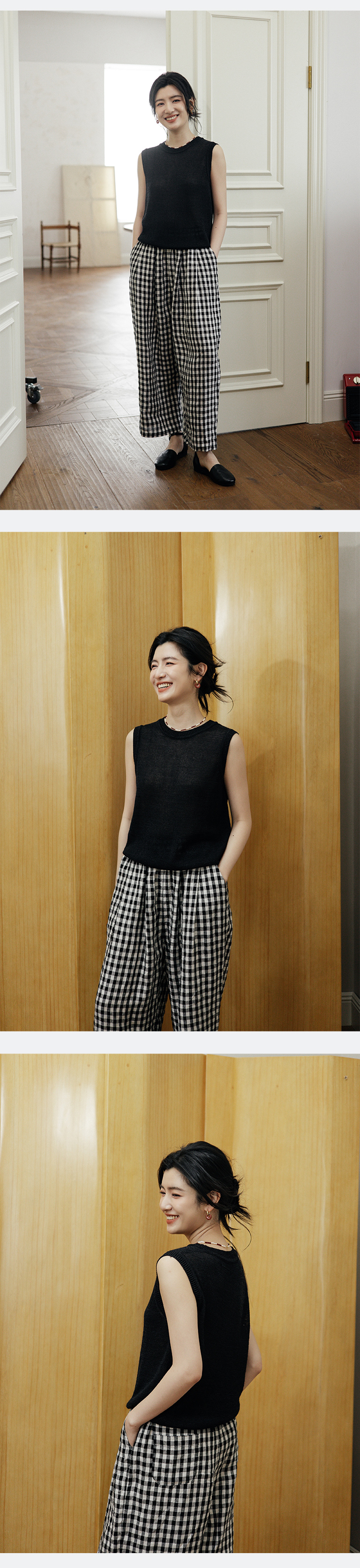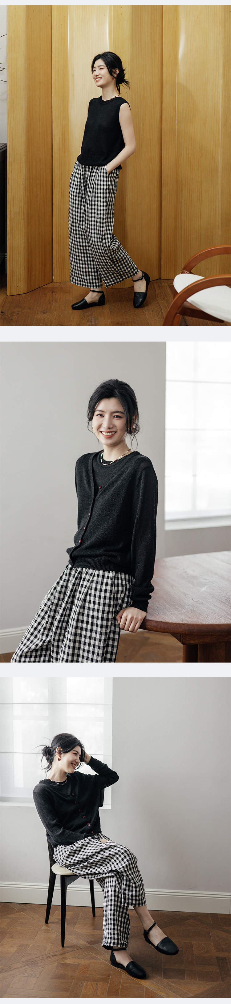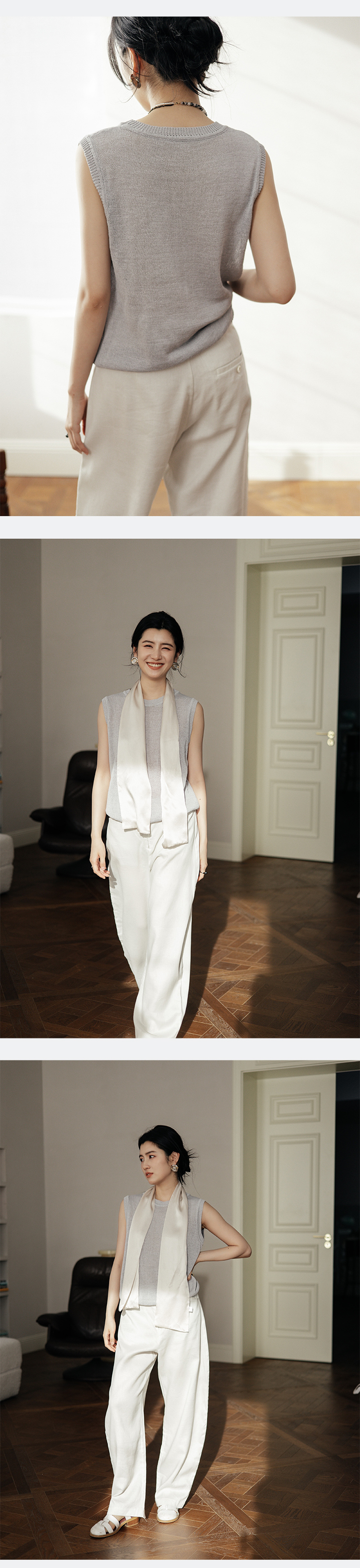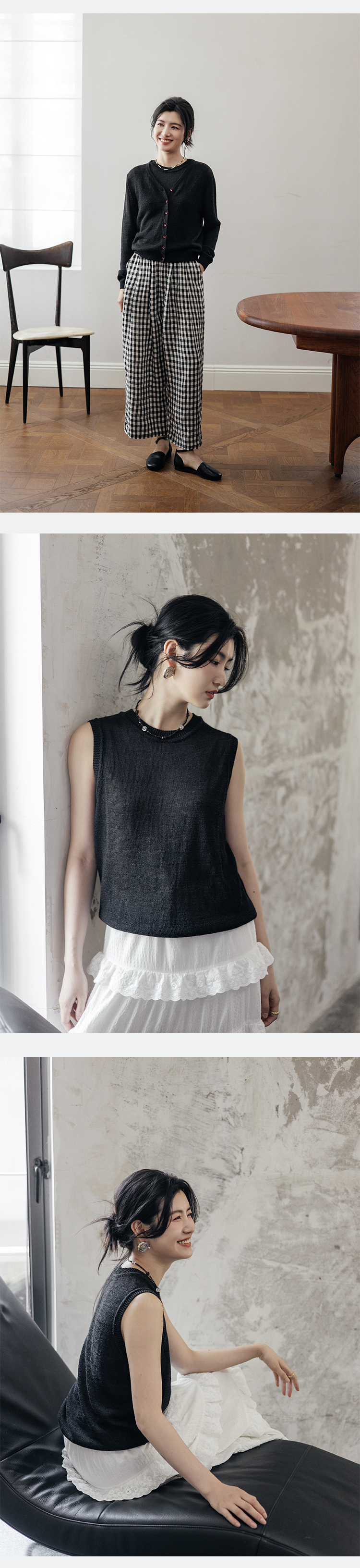 绽放旅行女装506朵【黑白灰系列】舒爽宽松圆领短款无袖针织背心