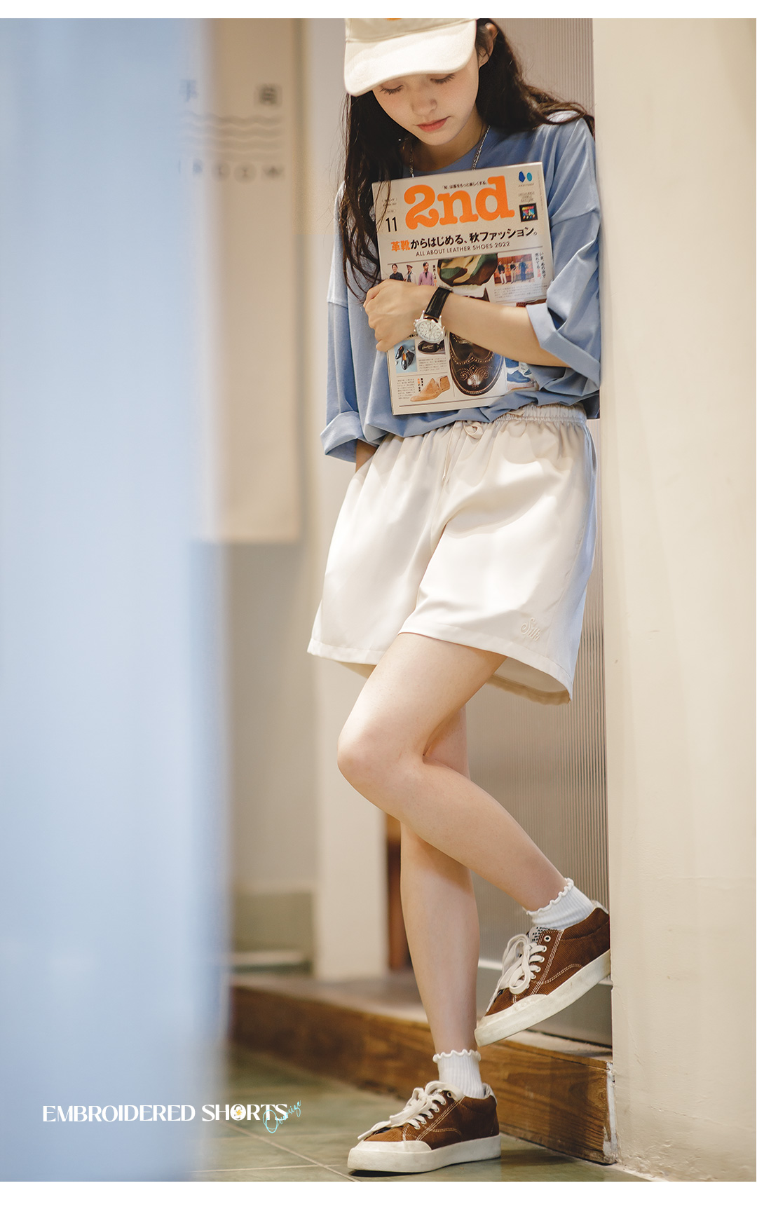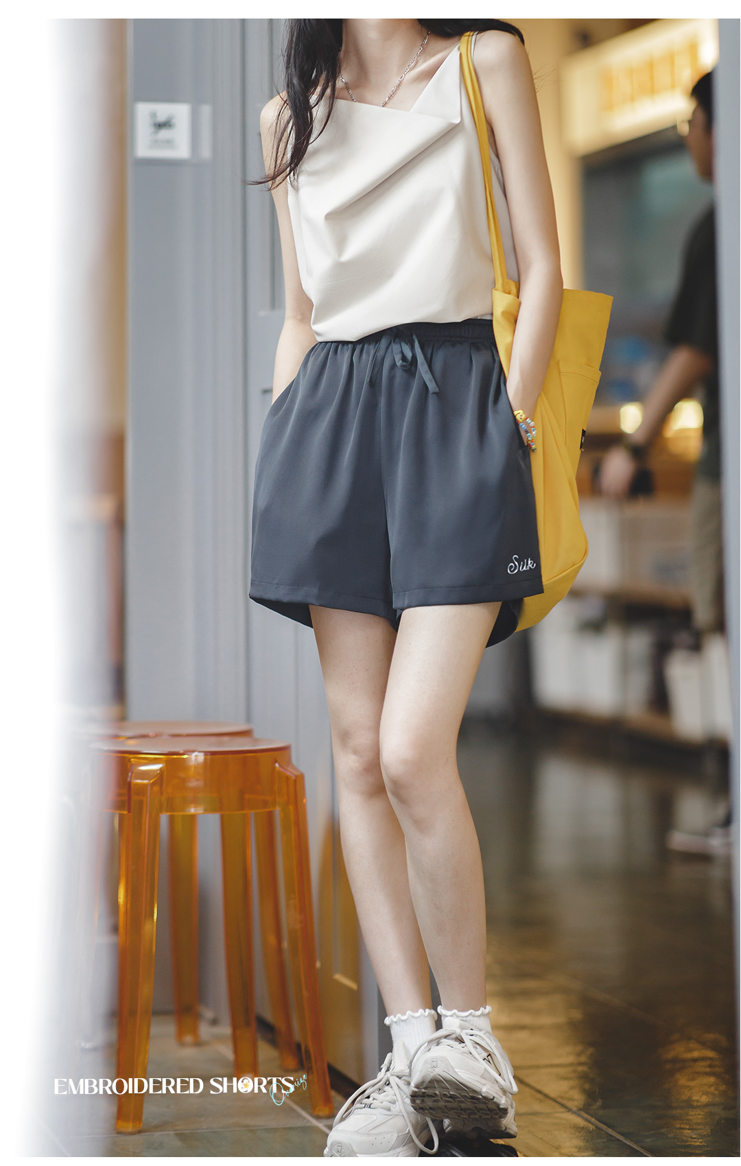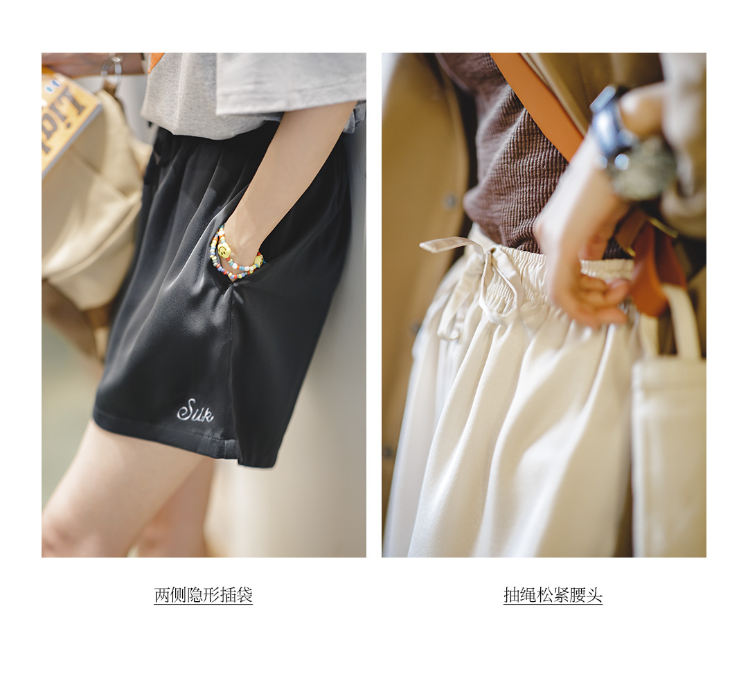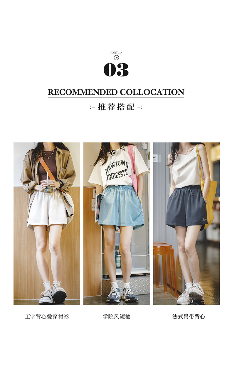马登女装美式休闲运动刺绣短裤夏季百搭显瘦丝感高腰运动阔腿裤