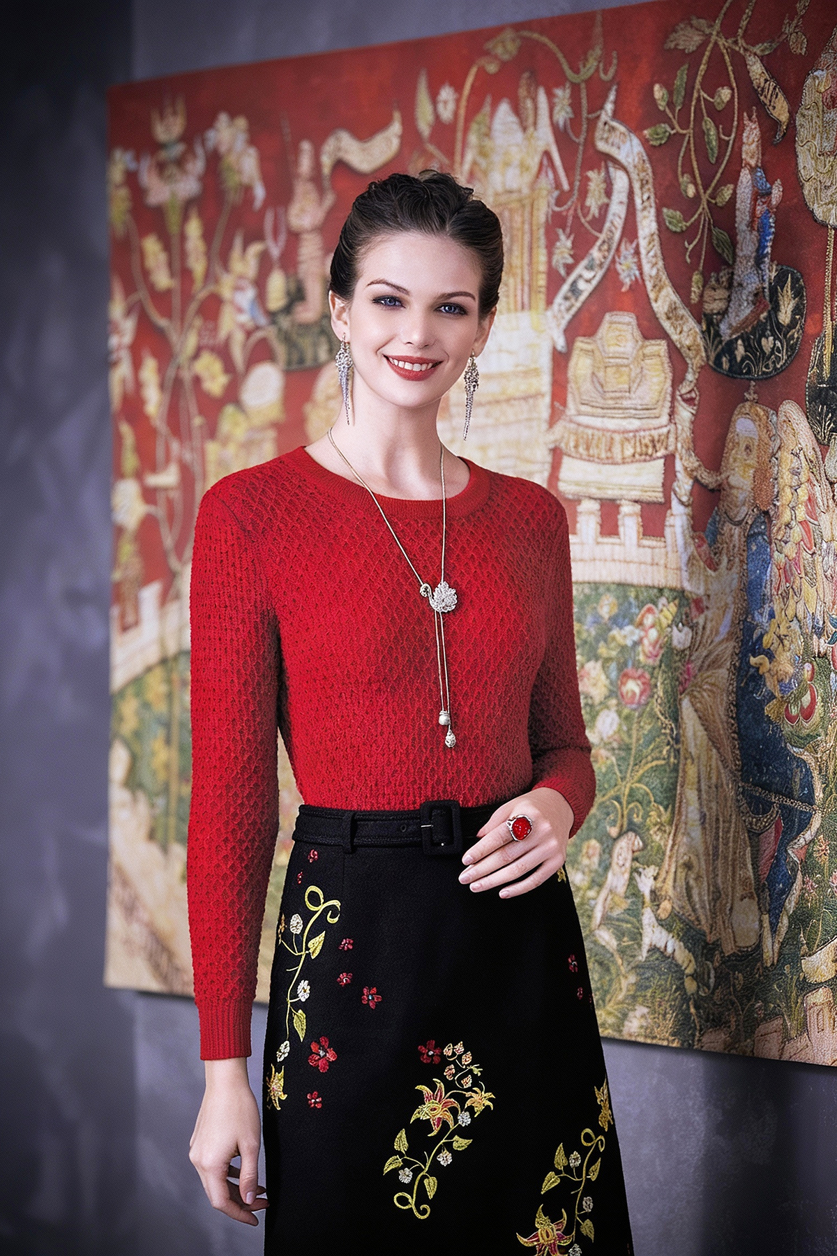 从此幅刺绣作品可以看出,在世纪时刺绣工艺已经达到很高的创造水平,整幅作品运用贴布绣的表现方式,将哥特式的风格表现得淋漓尽致。帷幔中展现的是在一个象征圣母玛利亚的密闭花园里,以天使带着猎犬追捕一直独角兽至玛利亚的两膝中的圣事。高超的表现手法让人感受到艺术远远不止是在纸上呈现,还能通过其他方式表现和留存至今。