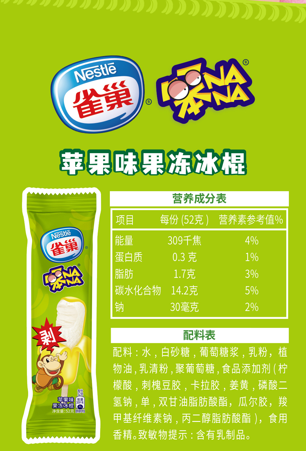 【新品】雀巢笨NANA苹果味果冻冰棍冰激凌冷饮雪糕 52g