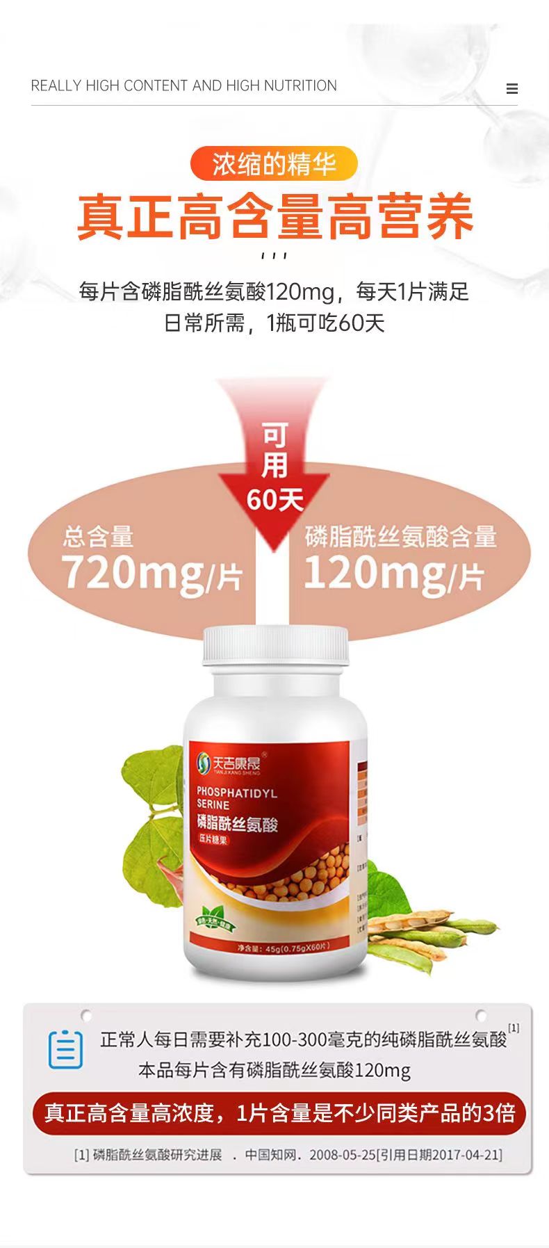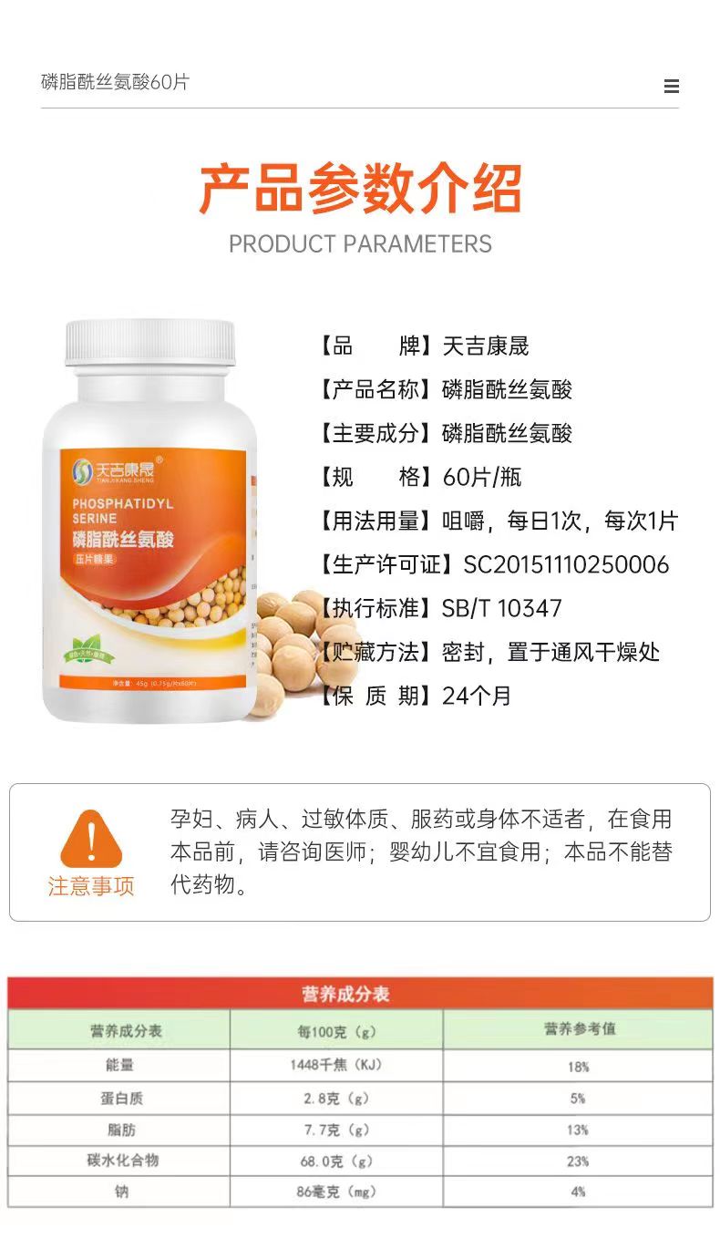 天吉康晟 PS磷脂酰丝氨酸 45g(0.75g×60片)