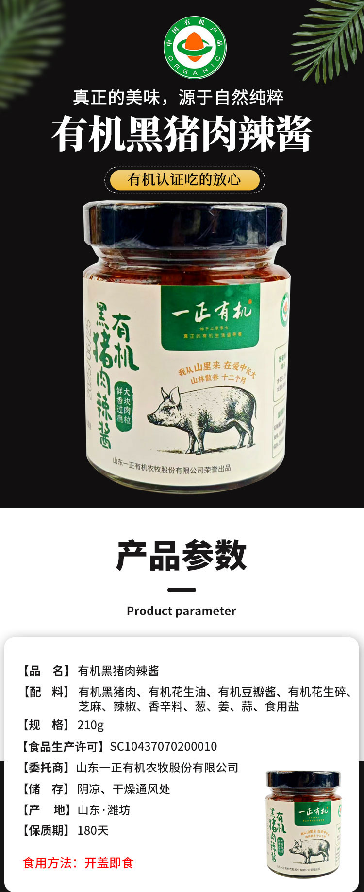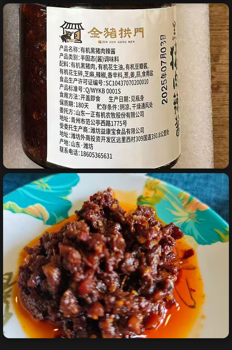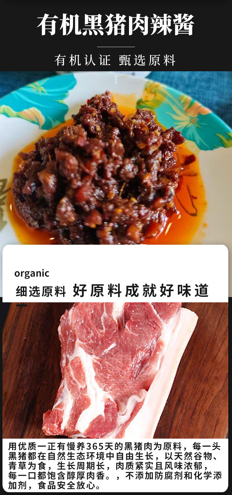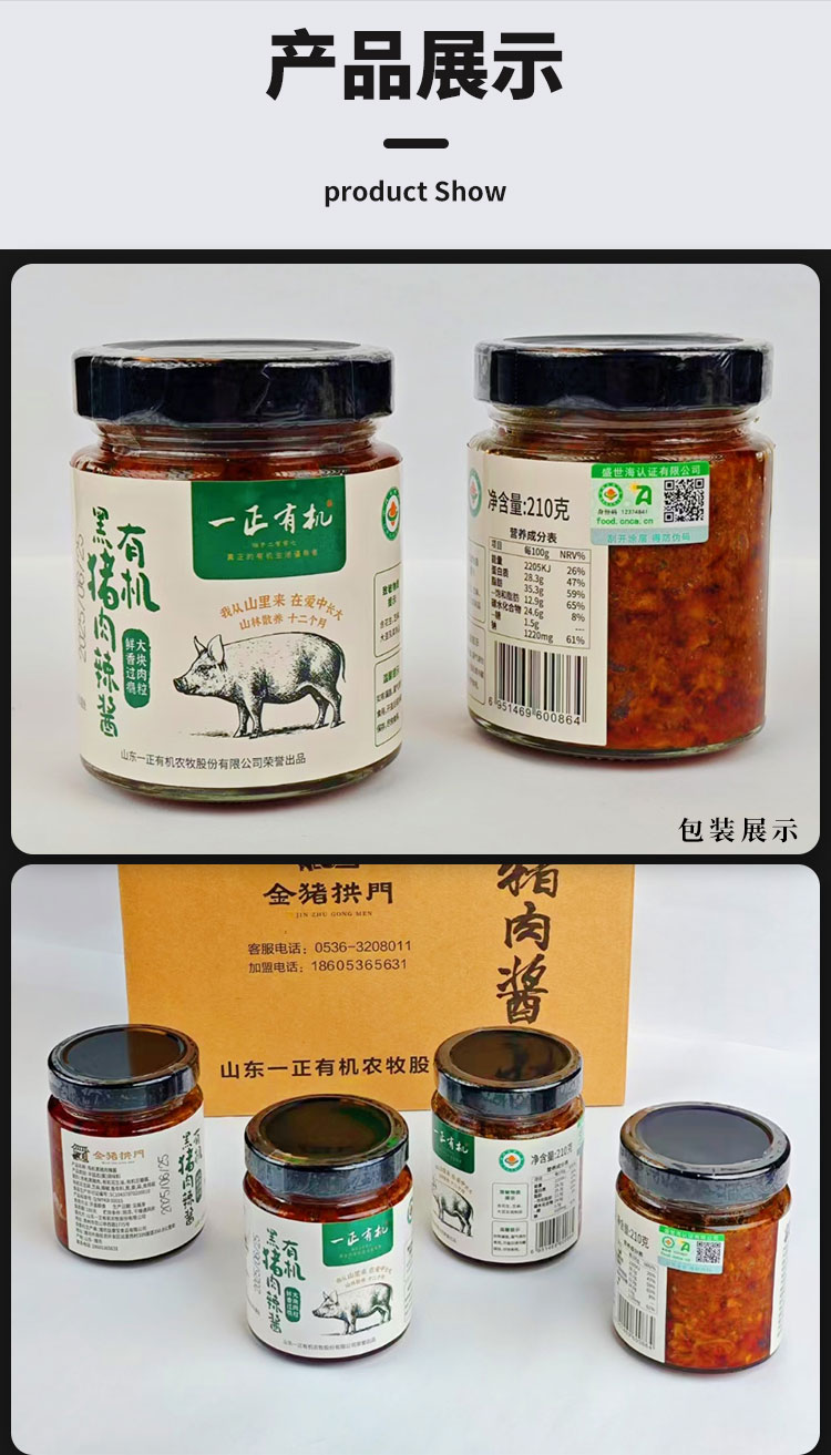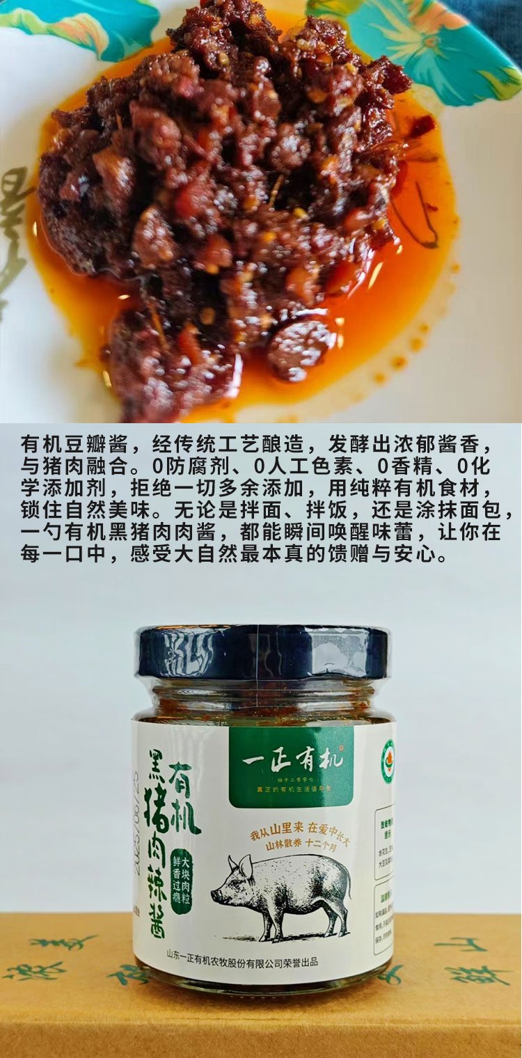 【厂商直发】有机黑猪肉辣酱210g*3瓶装0防腐不添加有机认证包邮