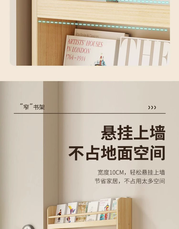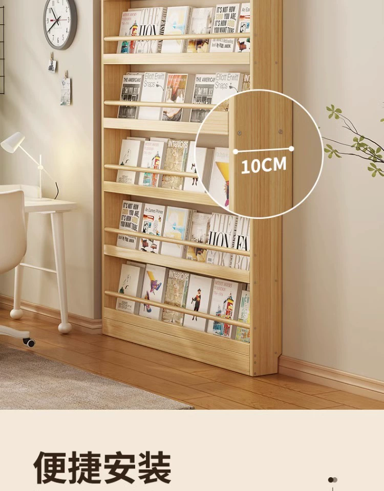 实木超窄夹缝置物架窄柜走廊玄关书架薄款免打孔绘本架门后收纳架