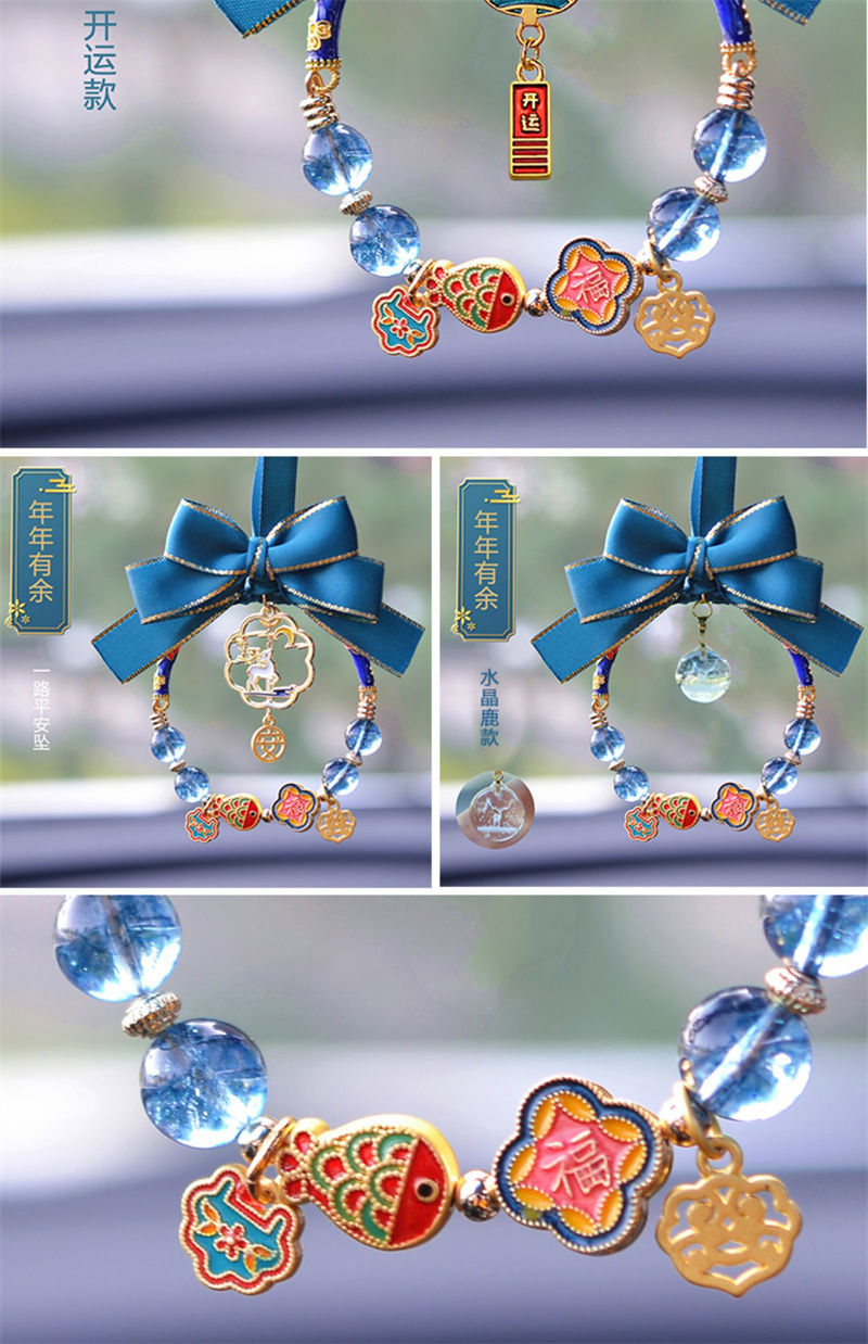 汽车挂件车内吊饰招财水晶鹿保平安蝴蝶结车挂时尚女神后视镜