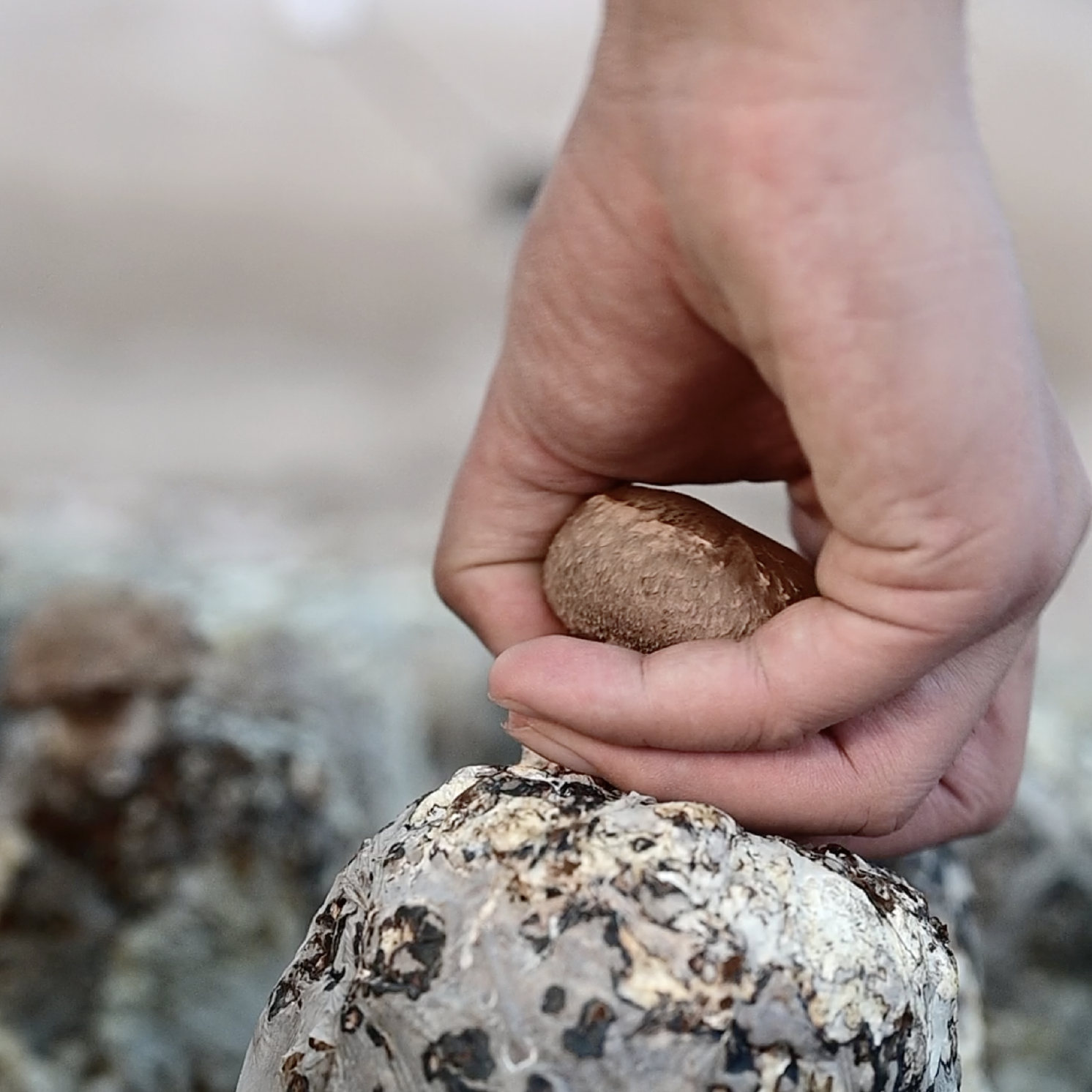 在制作菌棒时根据平人的有机种植理念和需求,只用木屑做成的菌棒,其他常规种植会用到的各种防虫、增产的原料,一概不用。