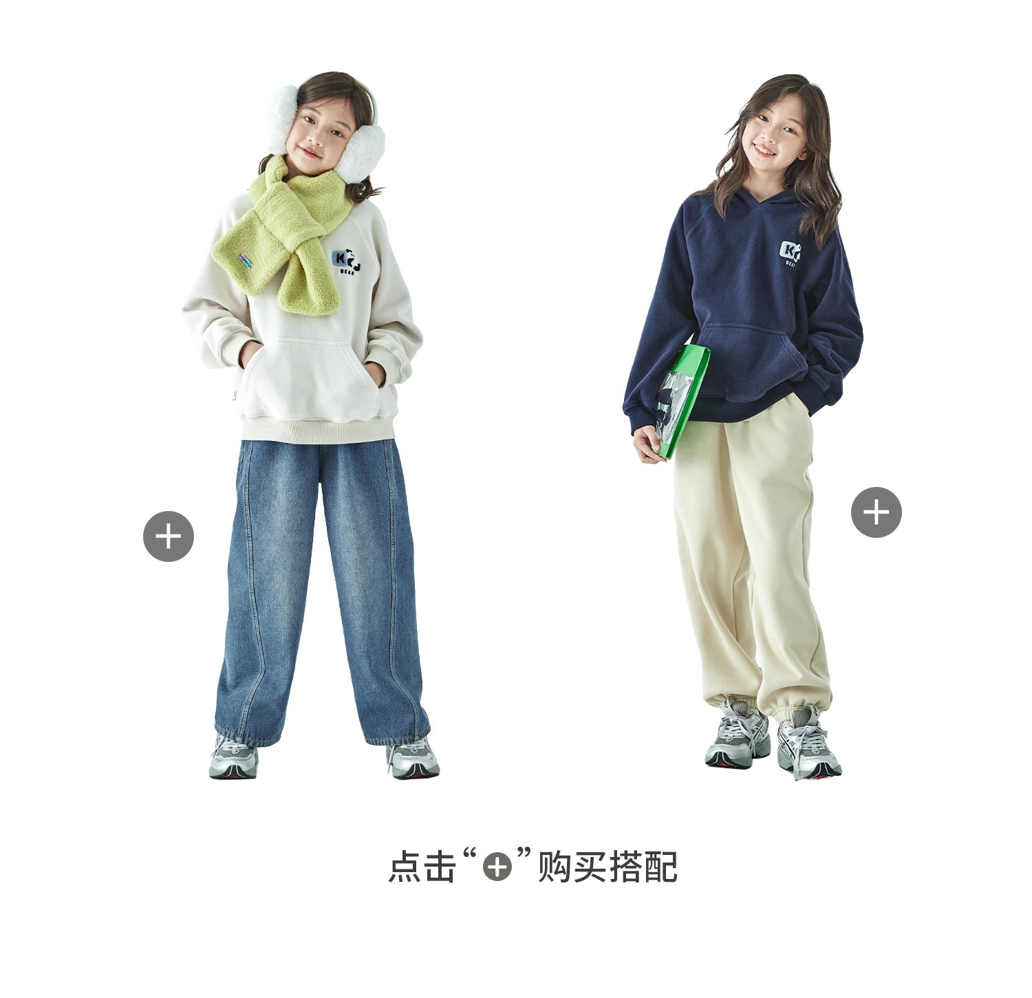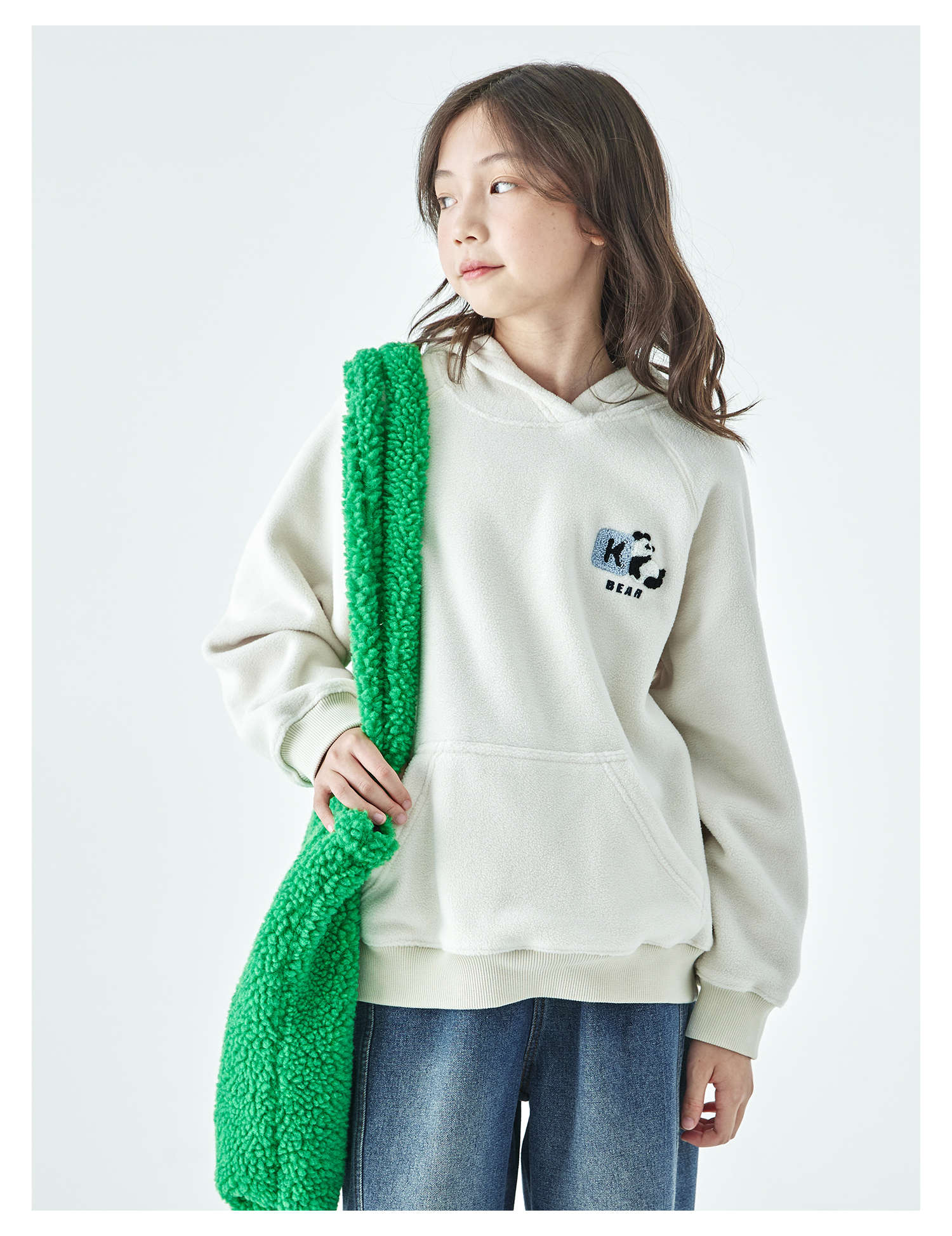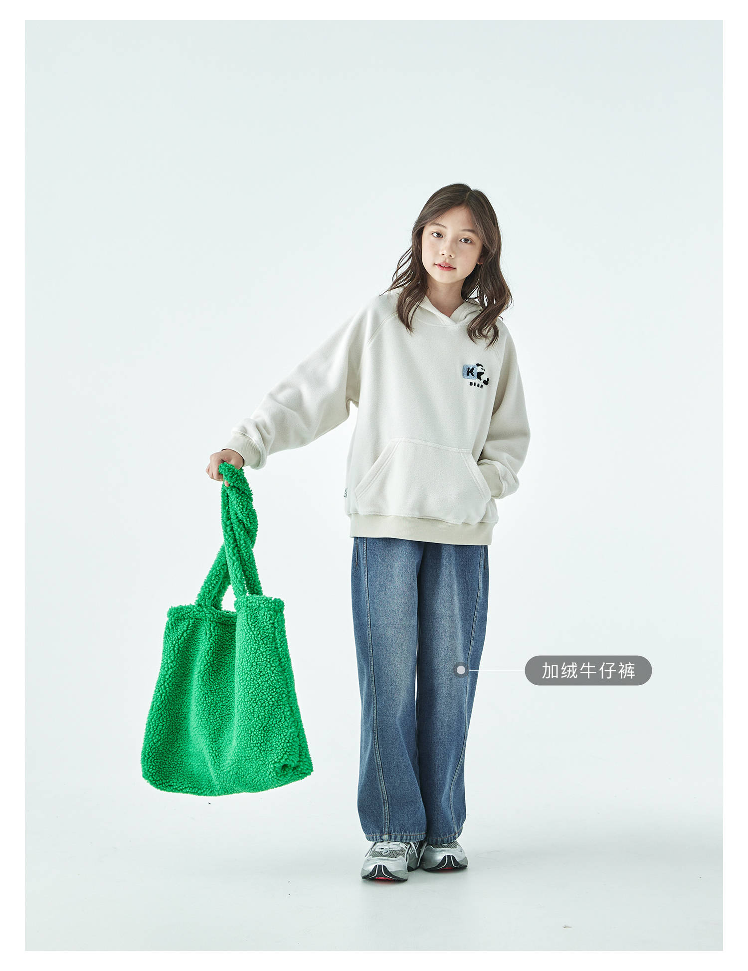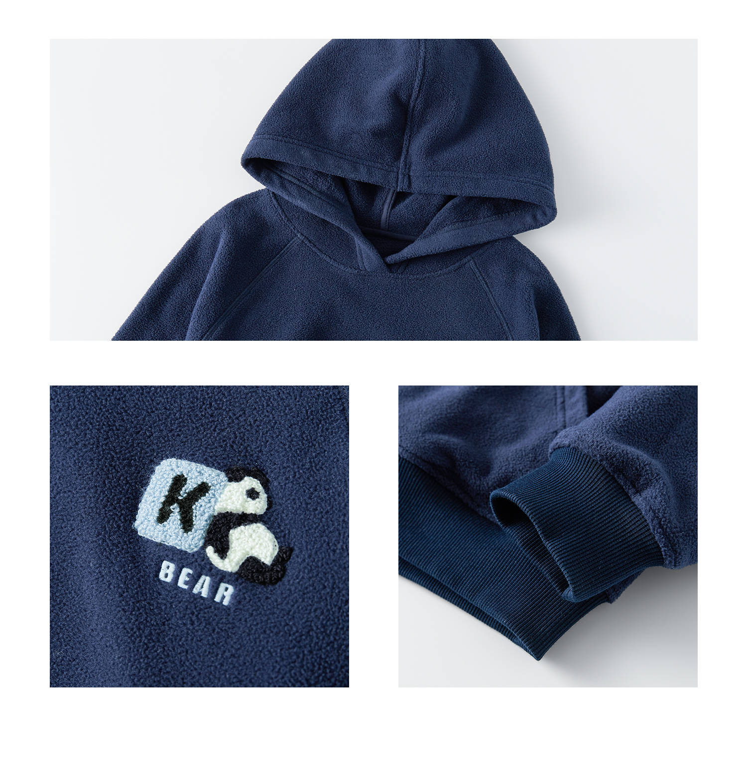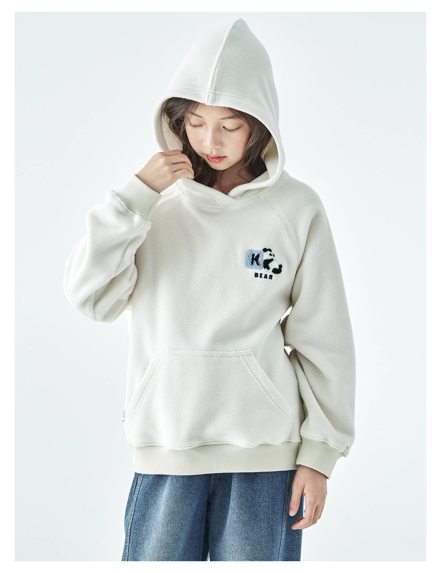 棵初25年秋冬新款亲子中大童连帽摇粒绒卫衣抗静电小熊猫绣花上衣