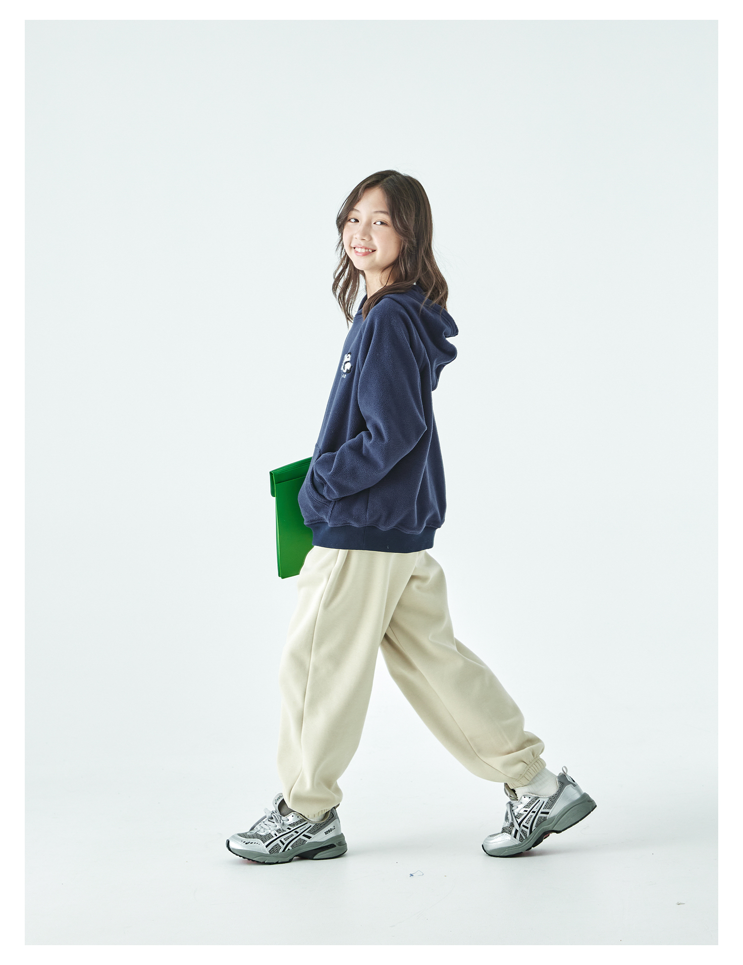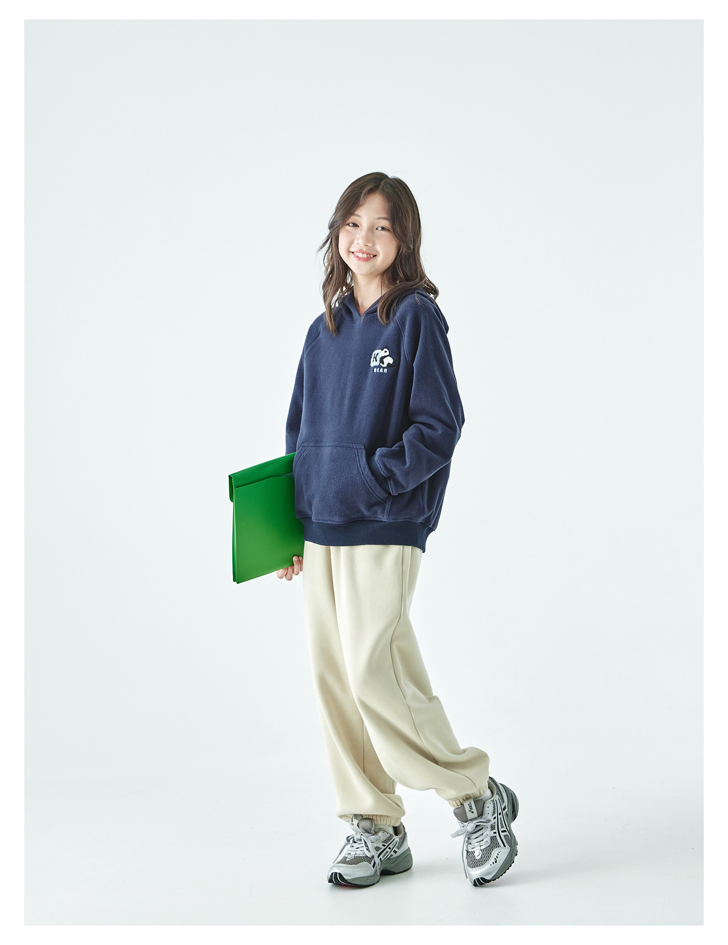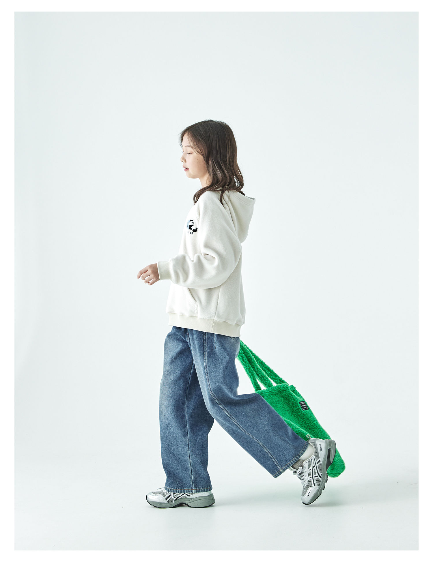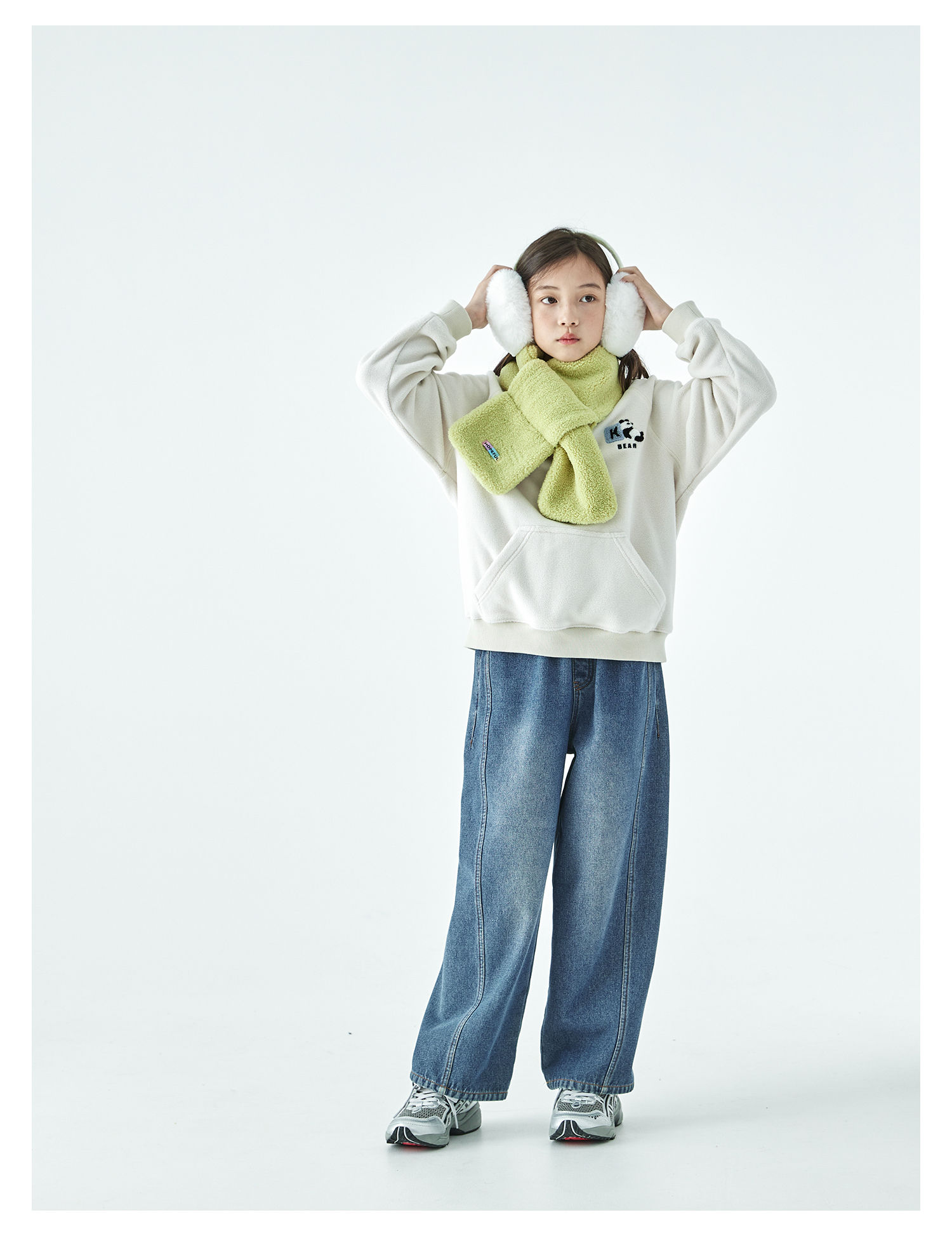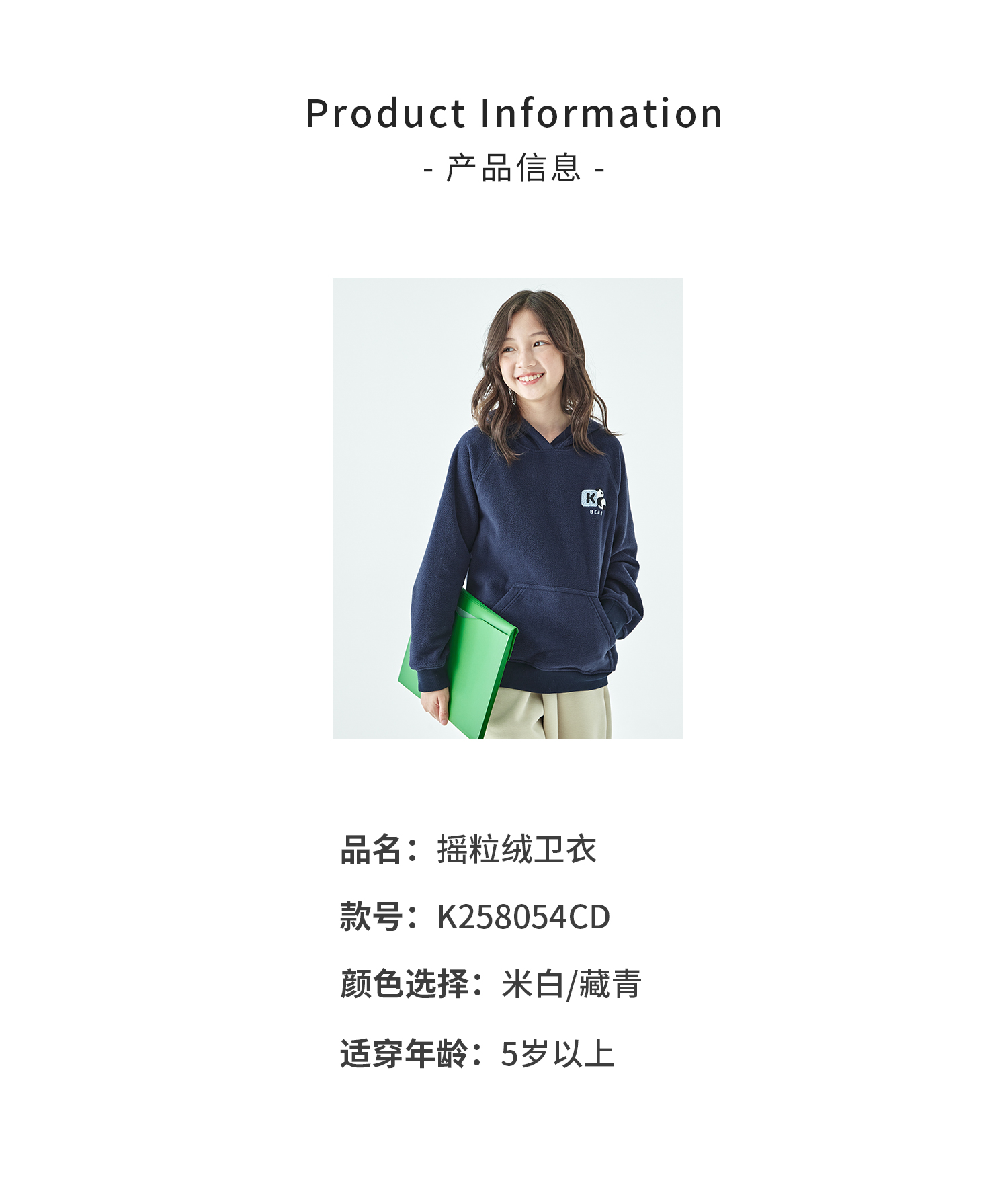 棵初25年秋冬新款亲子中大童连帽摇粒绒卫衣抗静电小熊猫绣花上衣