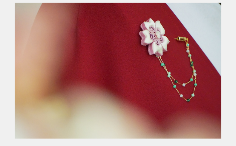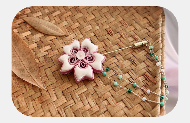 宫里的世界 粉樱缀绿真丝纯手工胸针 预售7天