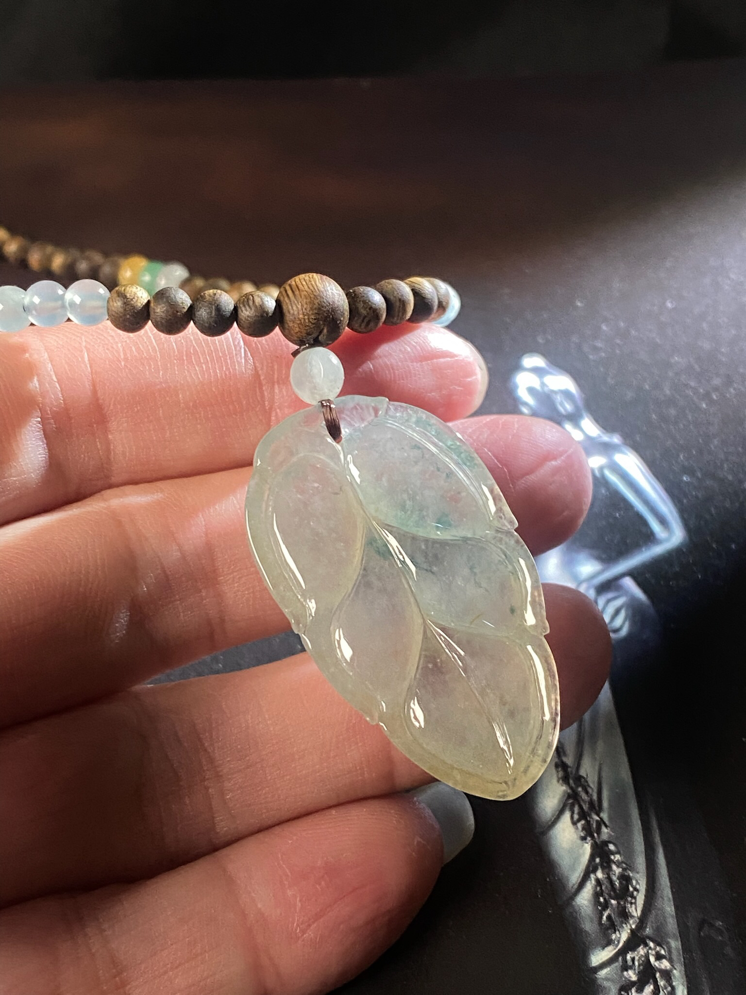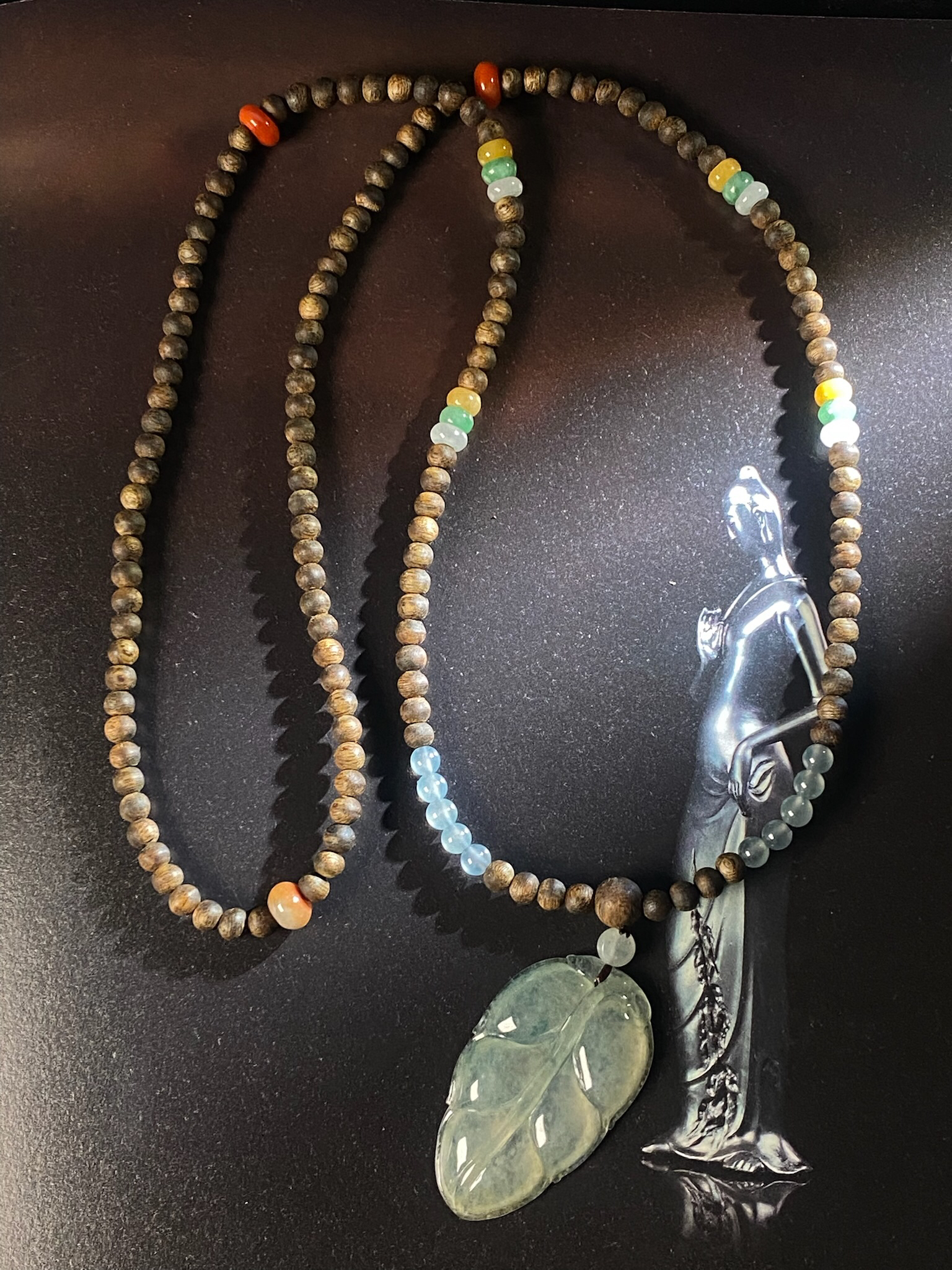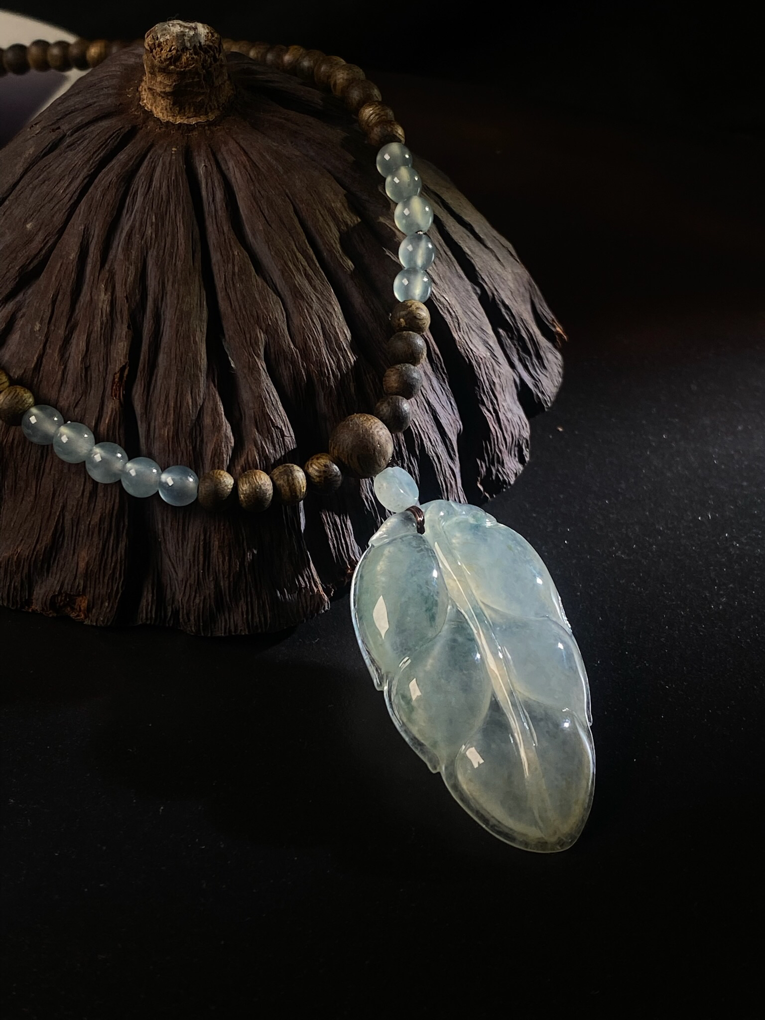 XY0053原创沉香+翡翠冰种叶子套链