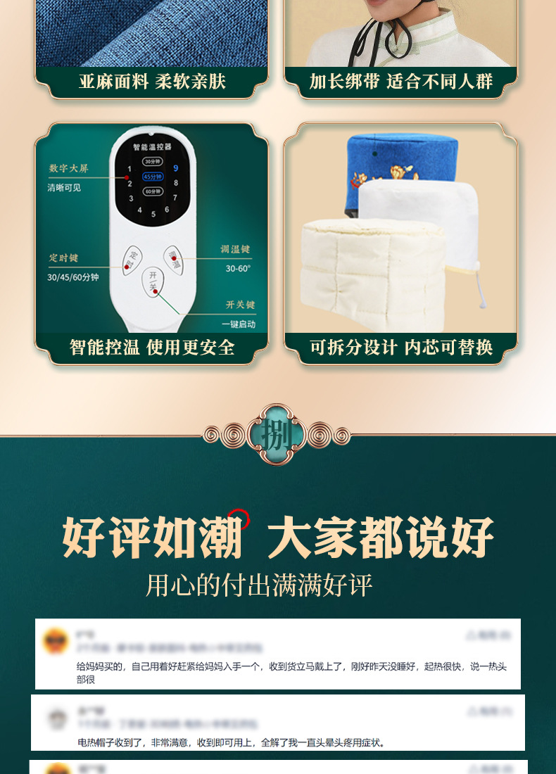 艾灸帽电加热艾灸热敷无烟熏蒸仪艾绒内胆头部艾灸热敷帽厂家批发