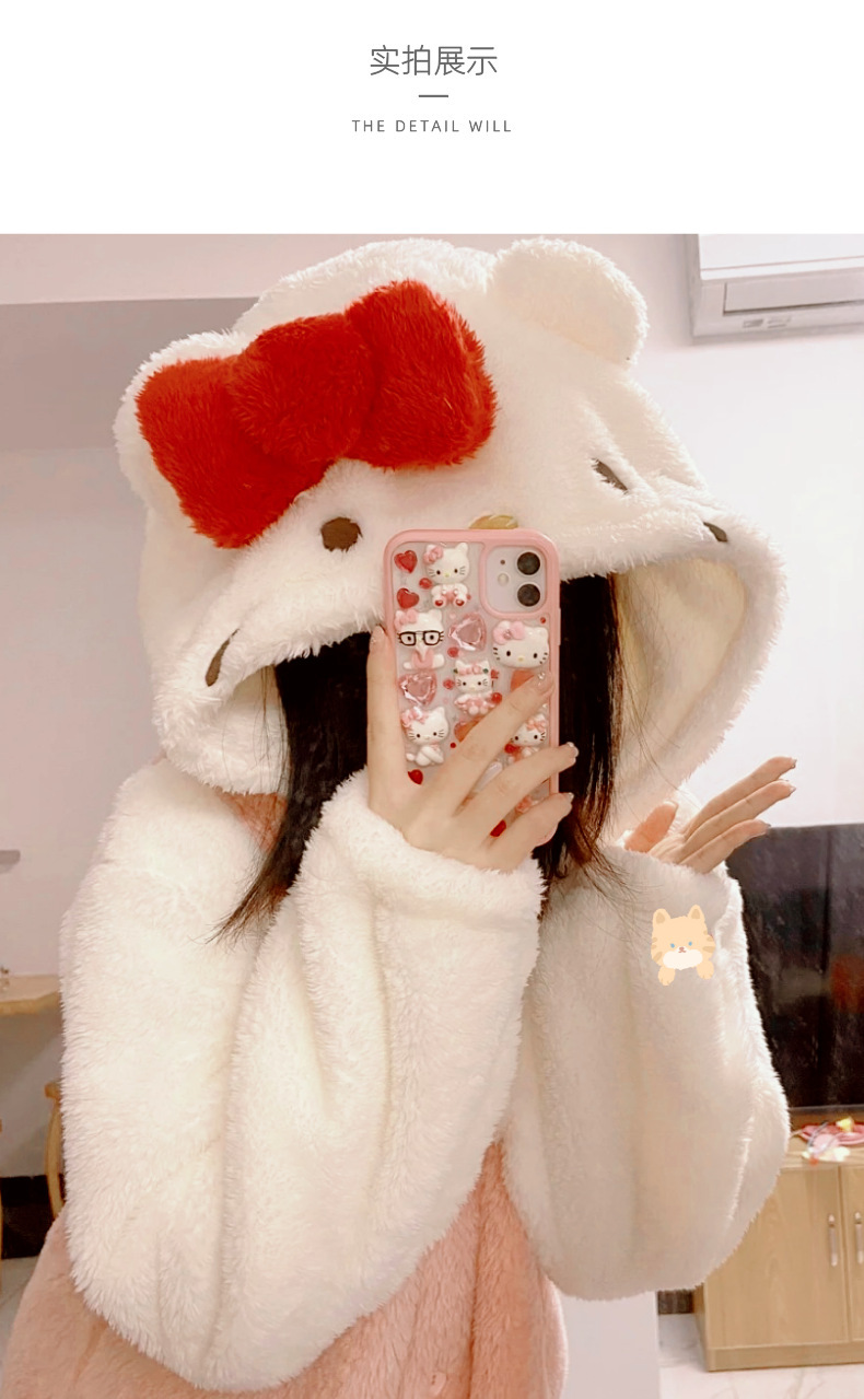 【超暖❗️敲可爱珊瑚绒家居服】一触即暖,心机显瘦,防风收束袖口,卡通猫居家睡袍女冬季新款加厚连帽高级感可外穿睡衣