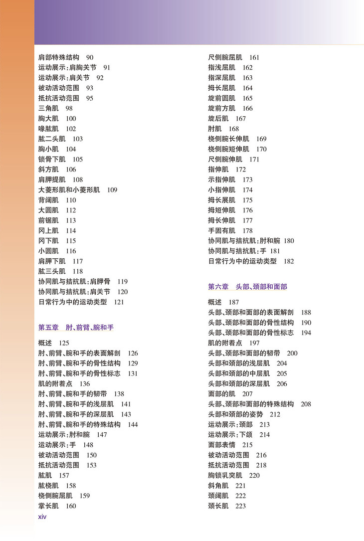 ● 立体图片 帮助读者“通过”皮肤逐层了解、进而掌握人体的结构;还对骨性和肌性标志进行了清晰的描述,以便学习触诊。