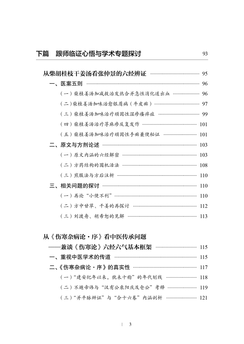 仲景学术专题探讨为本书重点部分,作者立足临床,文字强于思辨,针对仲景学说中的诸多难点问题进行了讨论。如用大量篇幅将《伤寒论》中的时空辨证格局作了全方位的分析探讨;对百合病与肺藏魄关系的规范与定位,对大青龙汤条文难点的剖析与论证,结合临证对柴胡桂枝干姜汤的深层内涵剖析,师承“辨证知机论”破解《伤寒论》第181条等,学术视角新颖,颇具原创性与可读性。