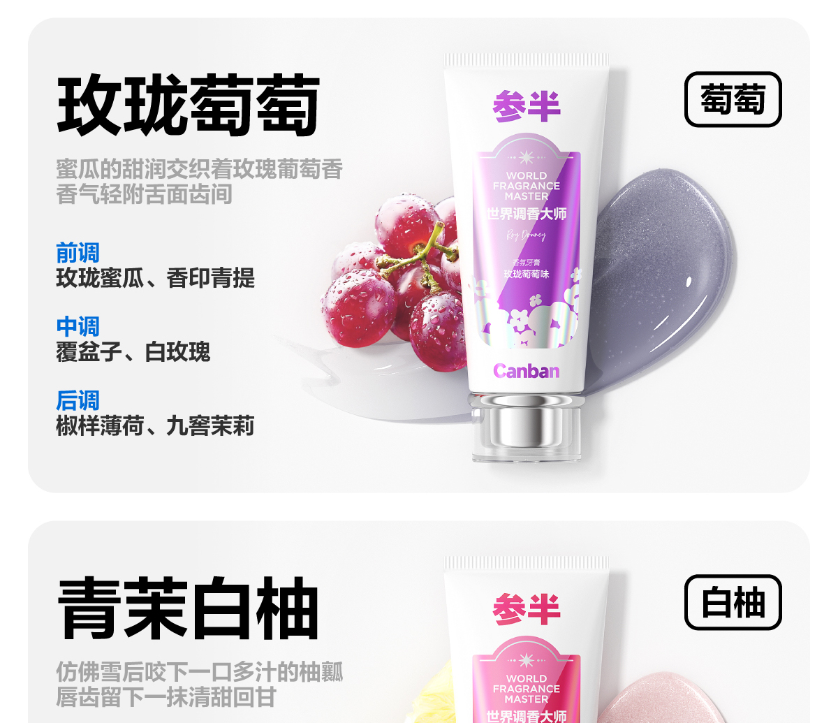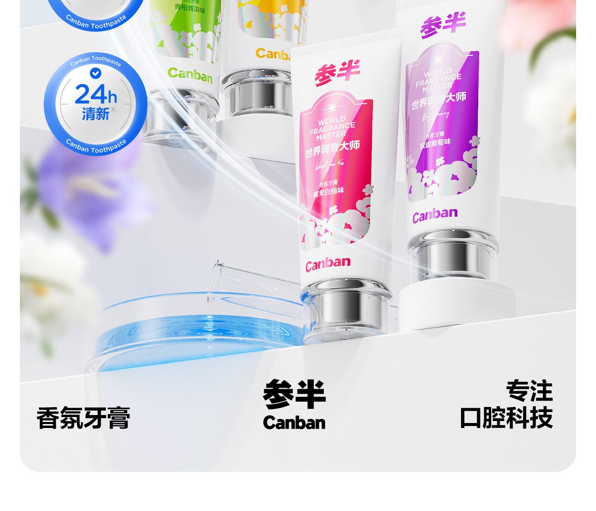 - 参半旗下产品已覆盖牙膏、漱口水、口腔爆珠、口腔喷雾等多个类目,为用户提供了精细化的口腔护理解决方案。