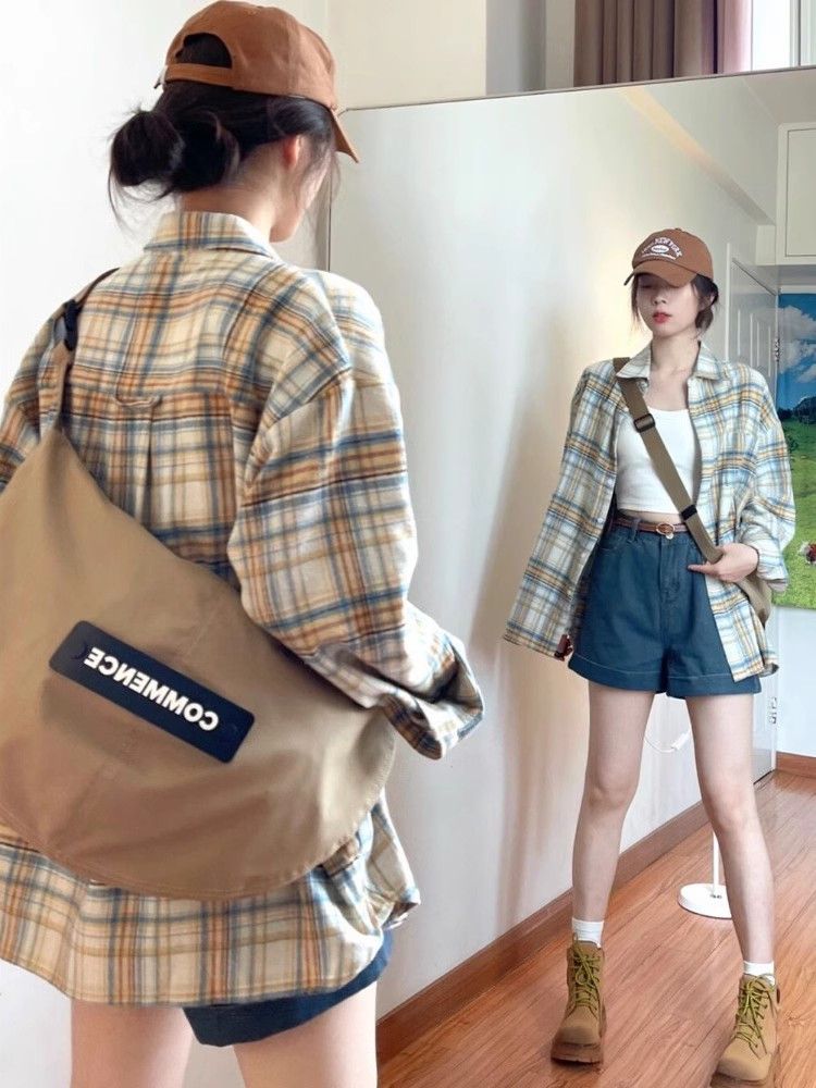 【幂式格纹衬衫】纯欲氛围感拿捏宽松版型慵懒显瘦!!外套式衬衫!略宽松的版型巨好看筋骨感强,立体有型!洒脱不羁又不失质感 各种风格信手拈来!一年四季都能穿!