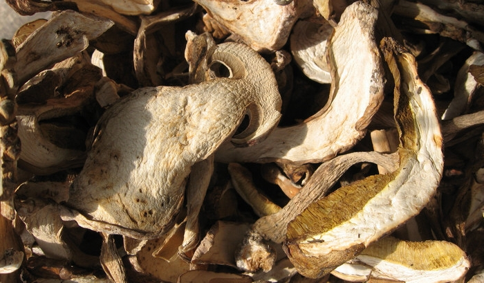 做成干片后的白牛肝菌只要不受潮就可以保存一到两年,村里人都会精心保存好野生菌干,待到有重要的客人到来时做一盘美味可口的好菜招待贵宾。