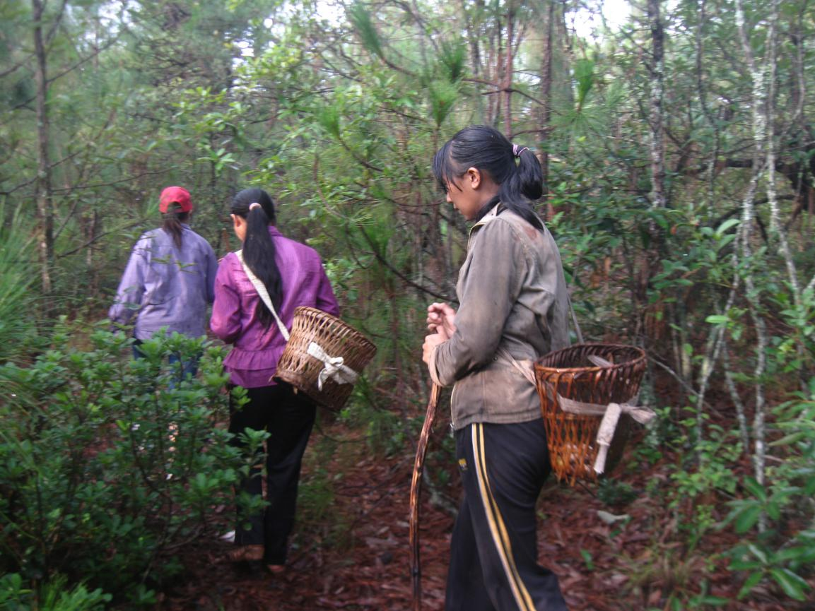每年进入雨季,彝族村民就会上山采摘各种野生菌类。野生菌类喜欢生长在树木繁茂的森林里。深山雾大,早上还有露水,山路崎岖,采摘野生菌非常辛苦。