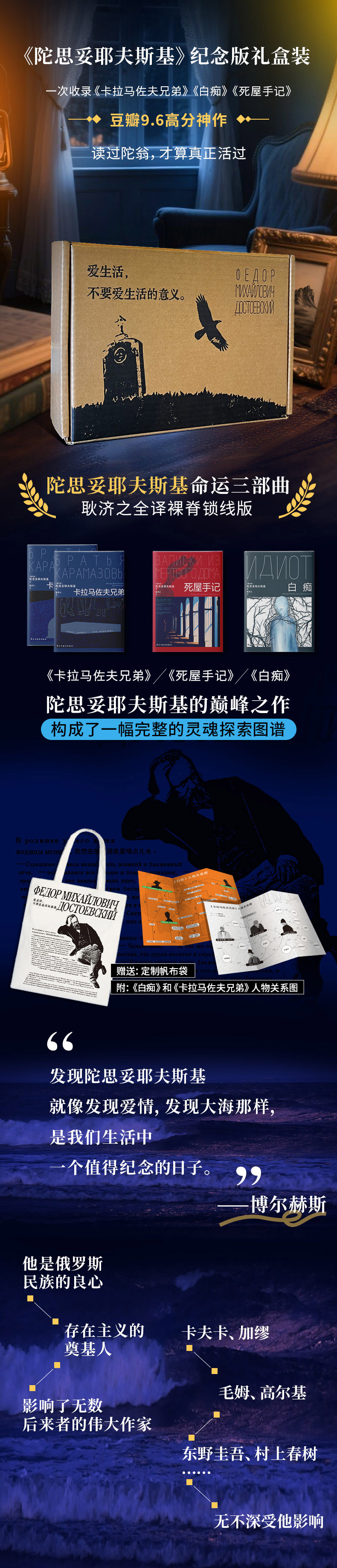 《陀思妥耶夫斯基》纪念版礼盒装 赠:原创设计帆布袋+《白痴》和《卡拉马佐夫兄弟》人物关系图