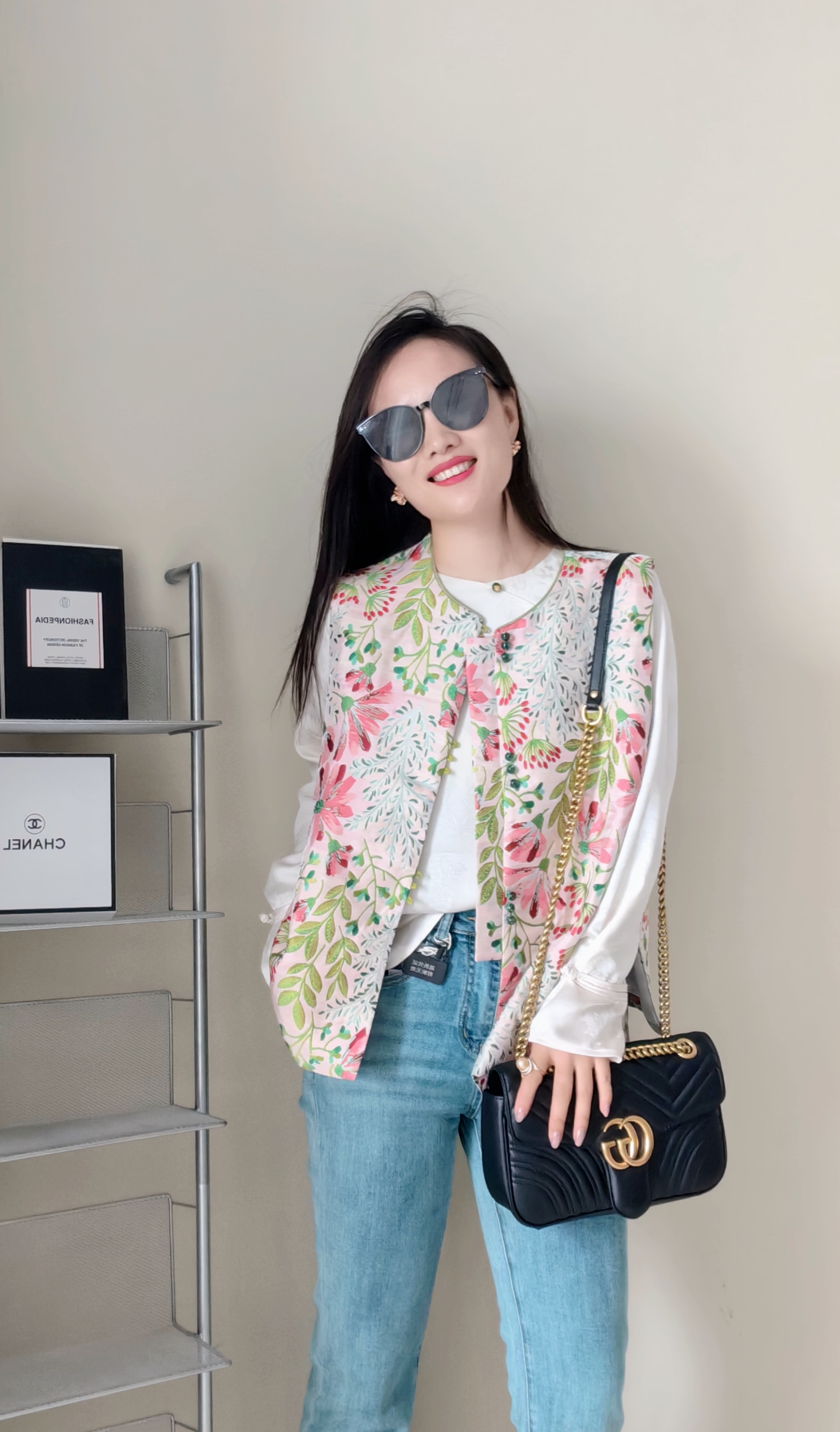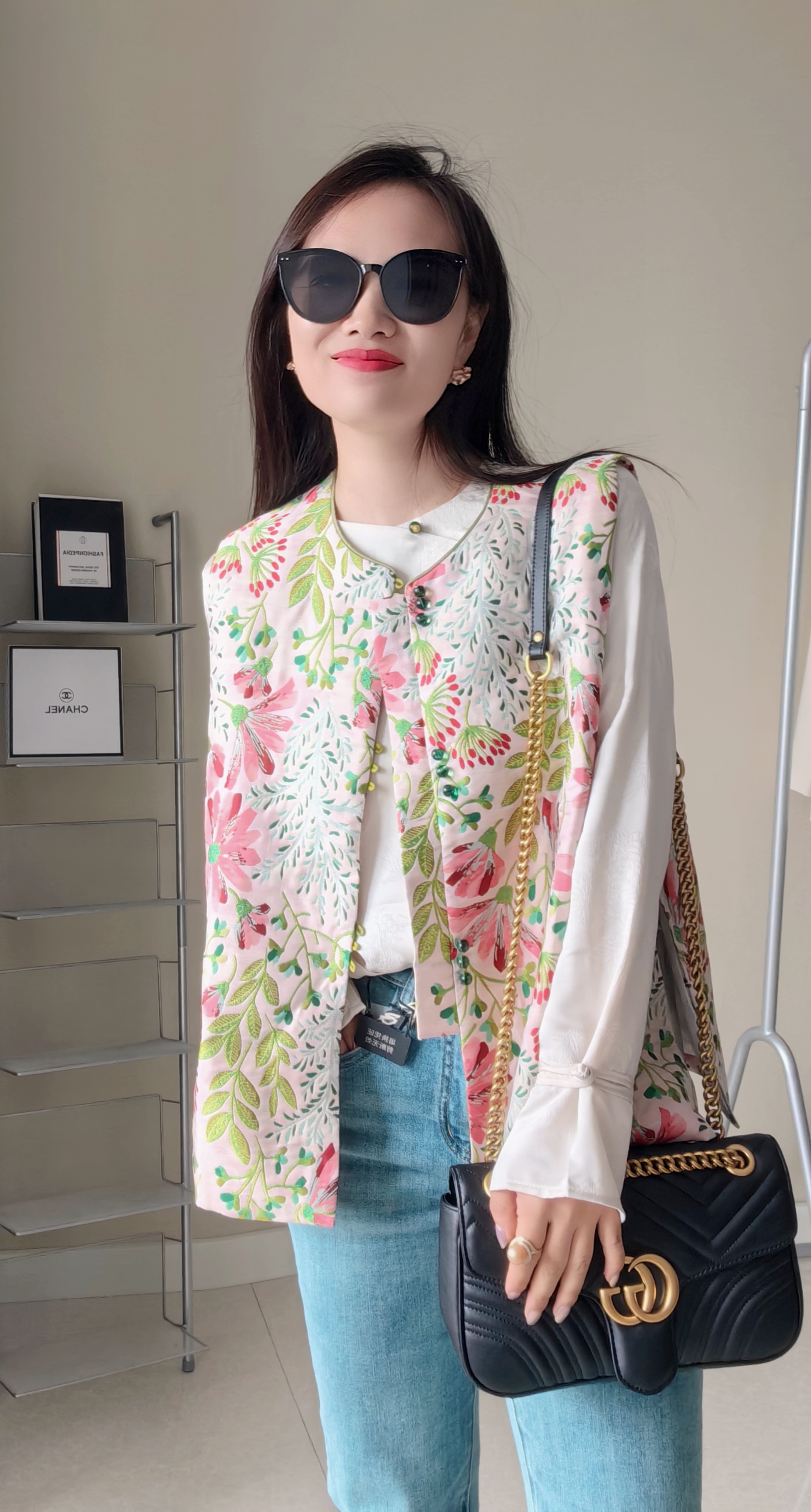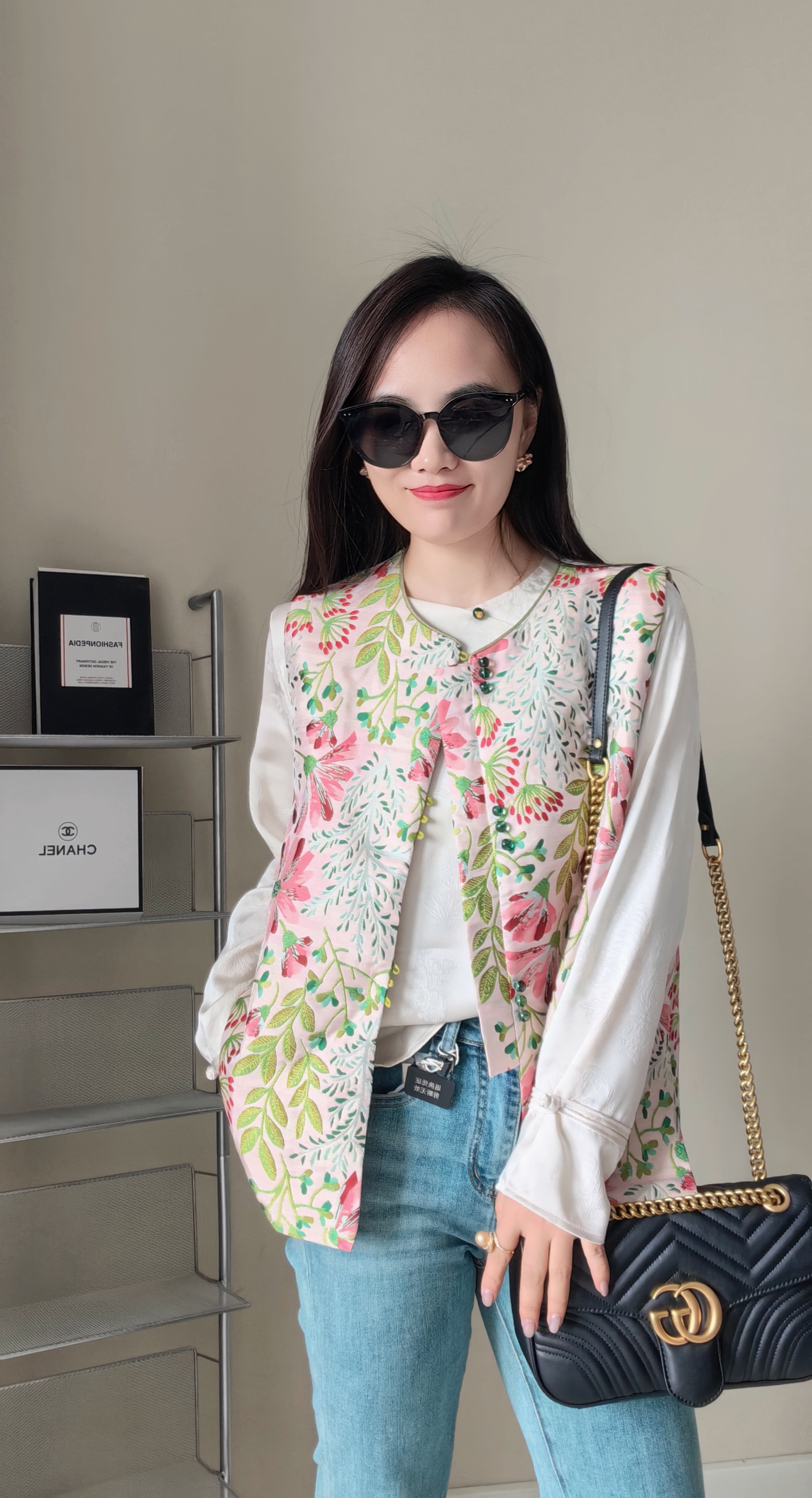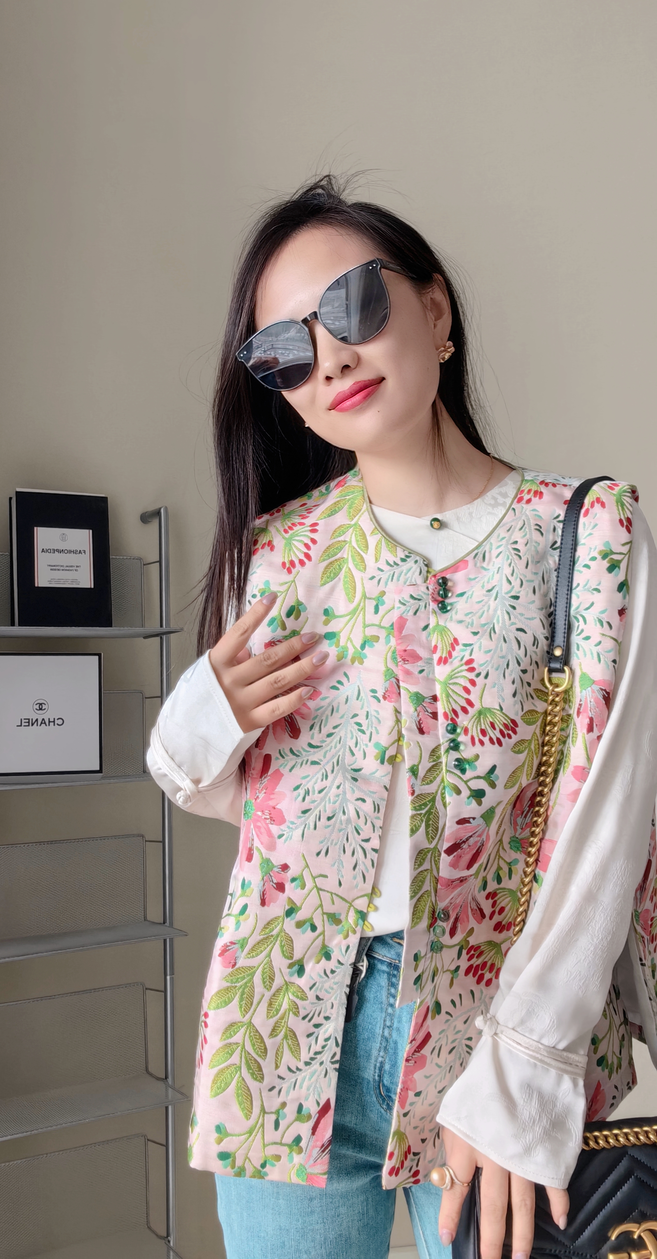 非常好看国风马甲,工厂目前现货啊!年初这件200多哦~现在工厂亏本特价马甲很遮肉,各种百搭,花色就如图片清新也立体~性价比ju高!