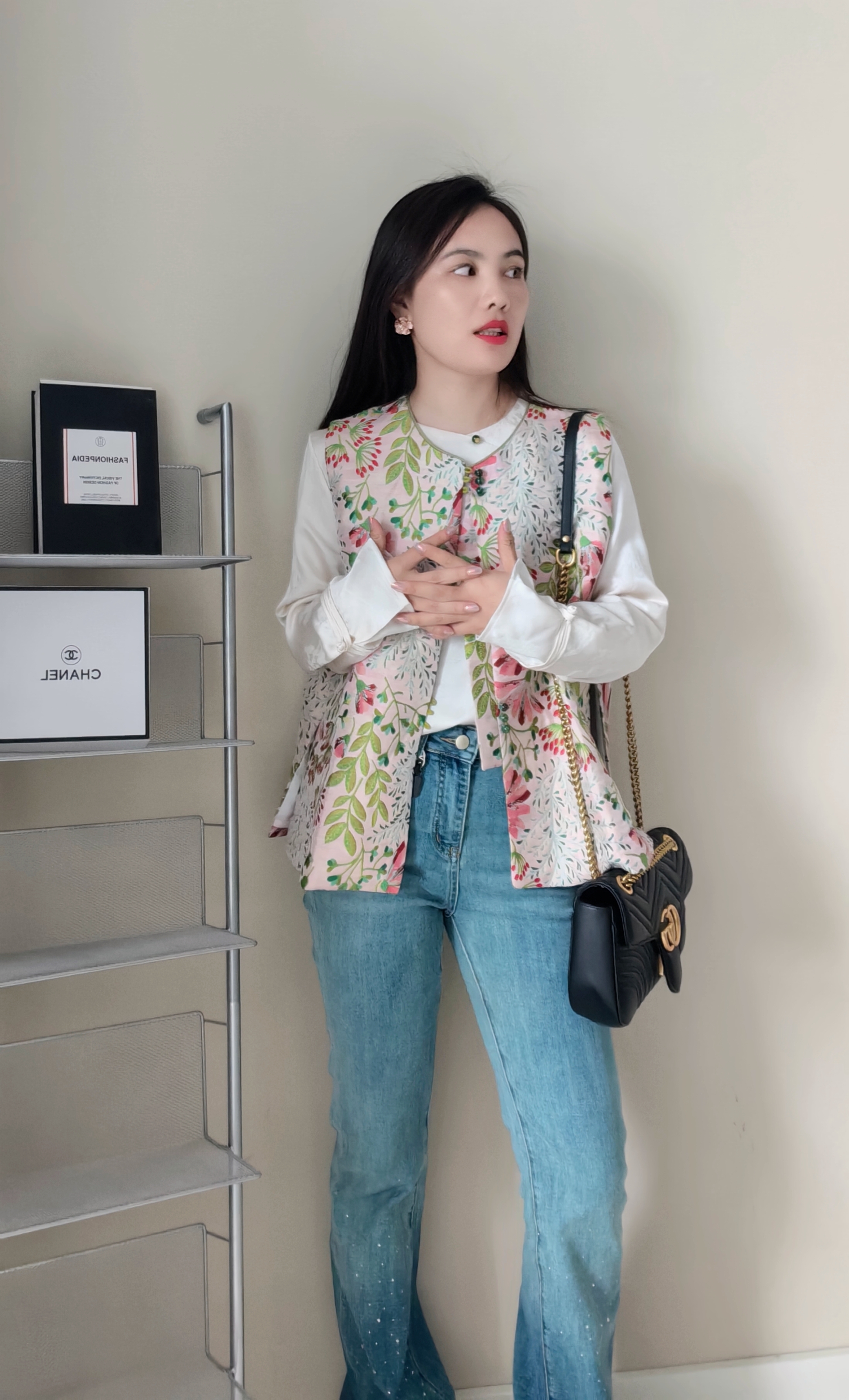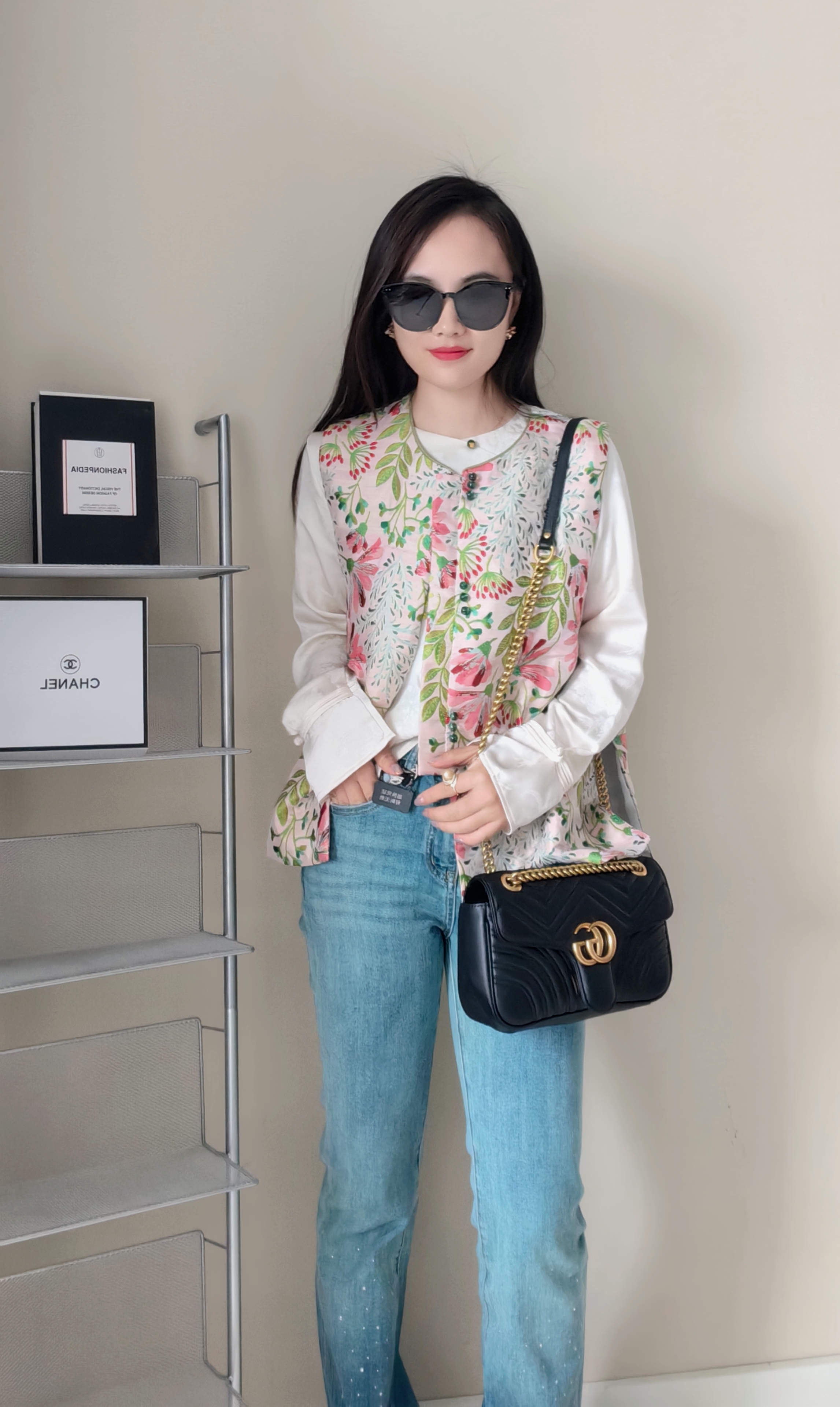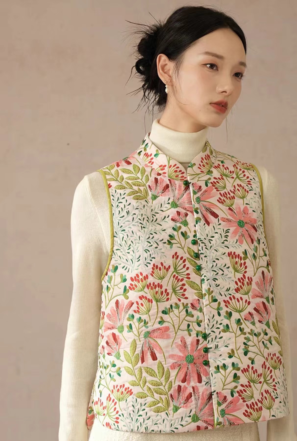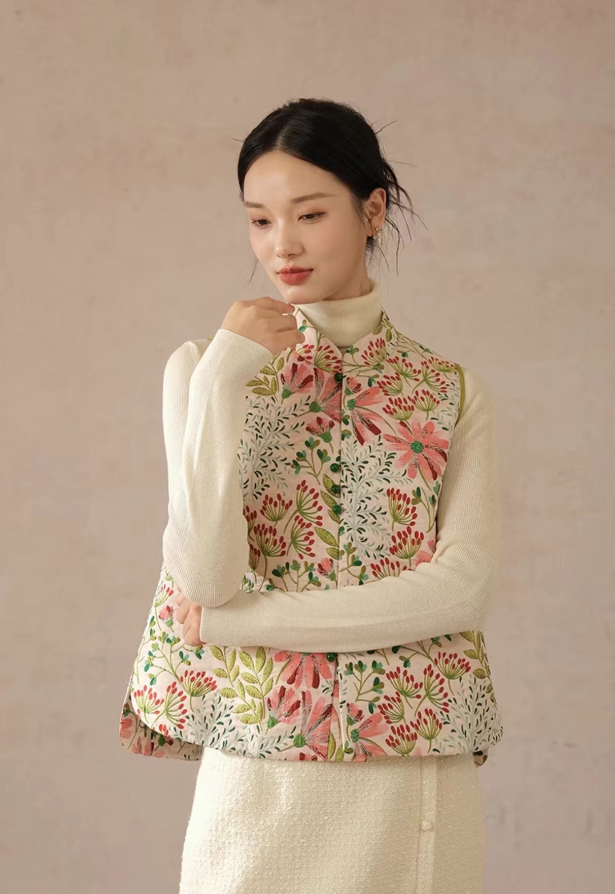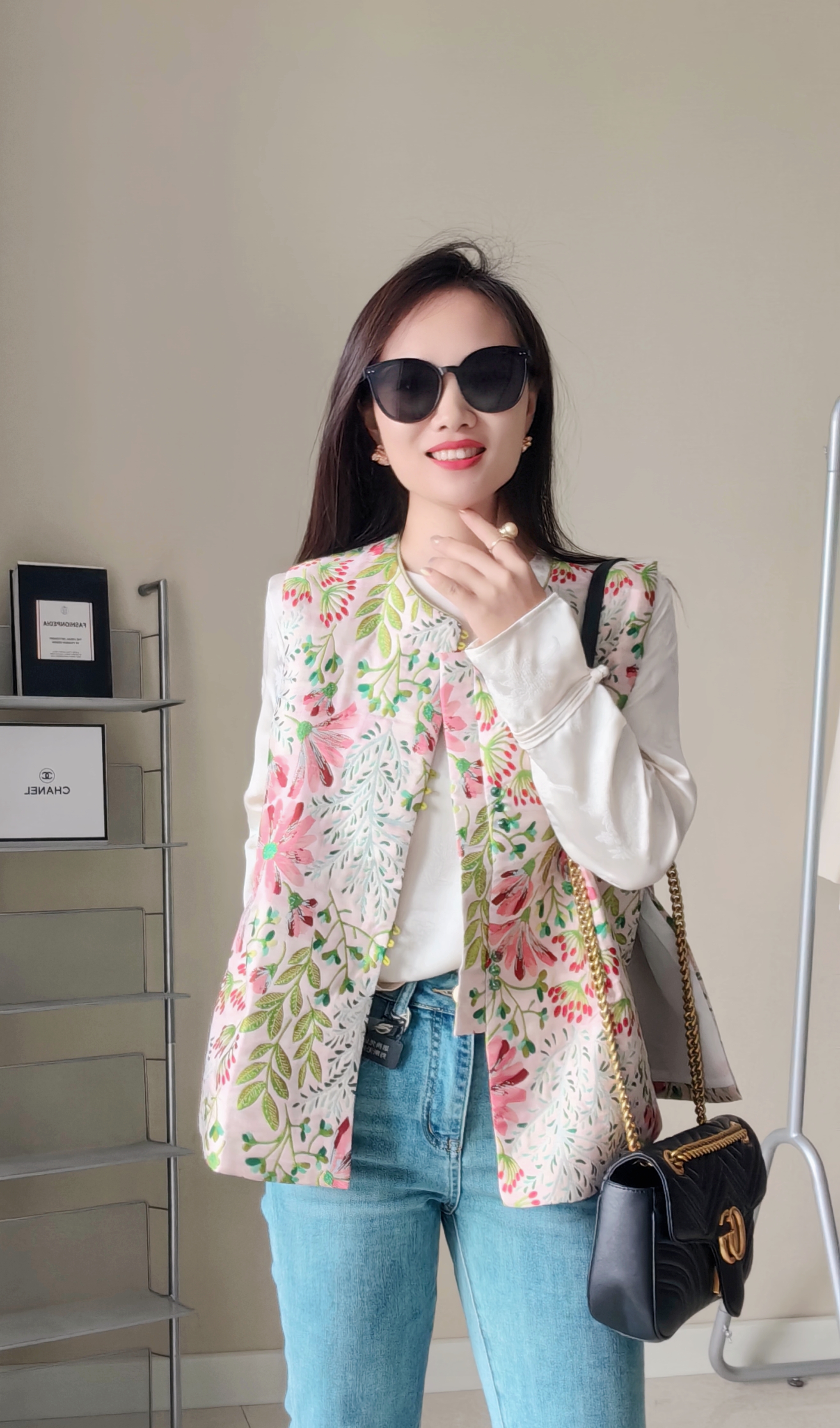 非常好看国风马甲,工厂目前现货啊!年初这件200多哦~现在工厂亏本特价马甲很遮肉,各种百搭,花色就如图片清新也立体~性价比ju高!