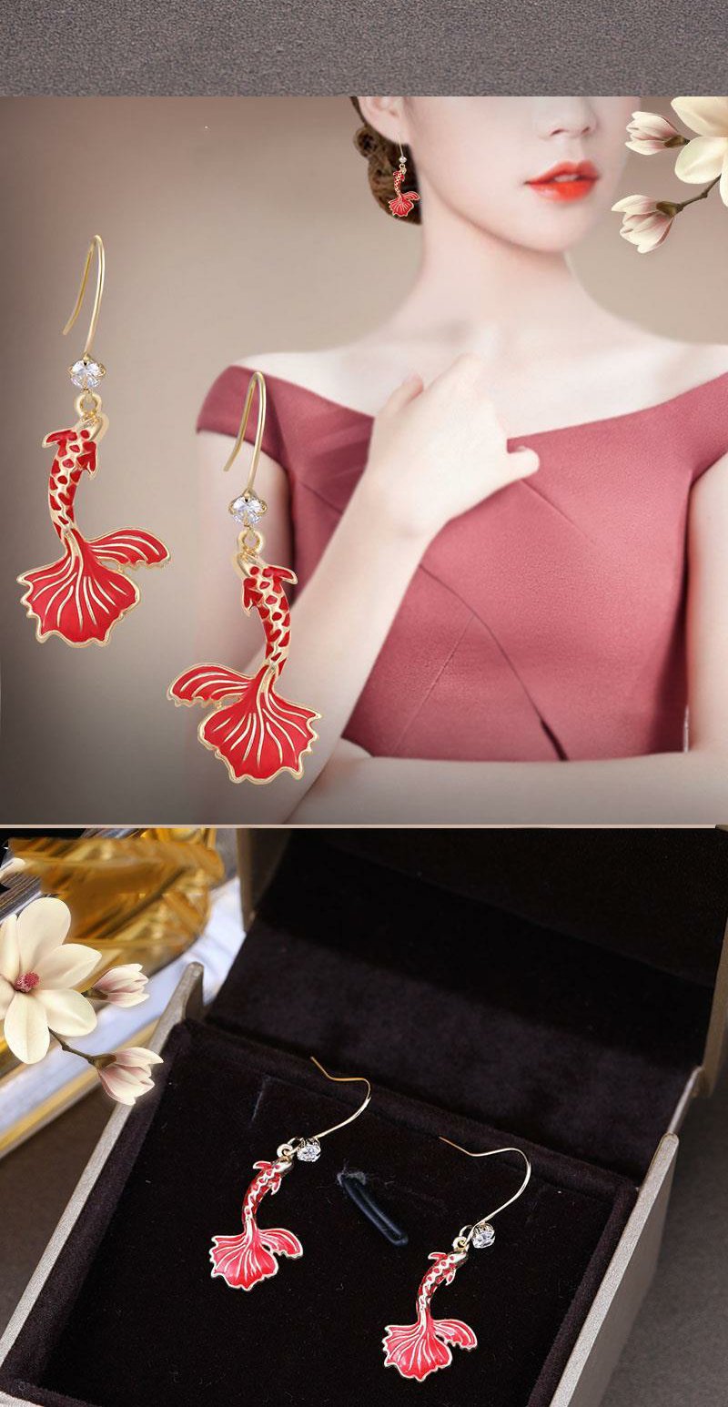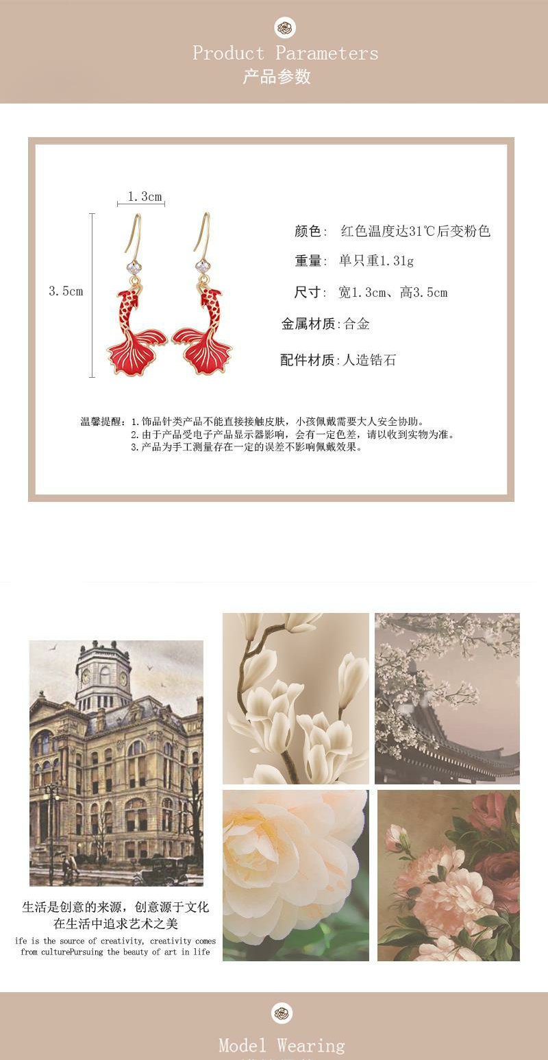 中国风年年有鱼耳环感温变色设计感新款潮气质红色锦鲤耳饰品