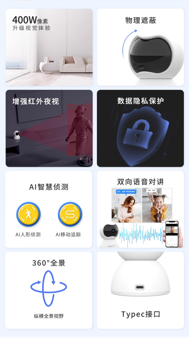 严选【2K高清摄像头400万红外夜视远程】已接入米家智能无线监控室内摄像机全彩对讲